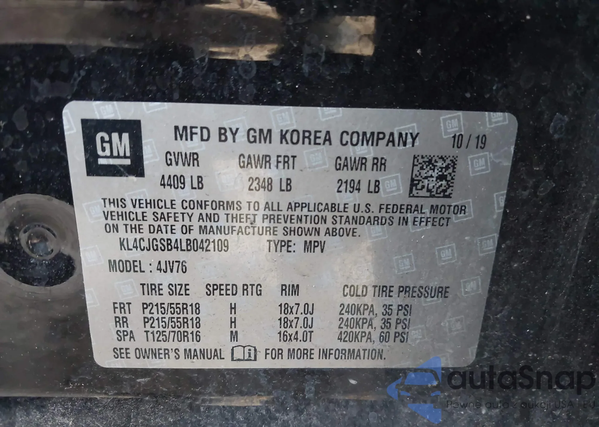 • VIN 2GNAXJEVXL6190421