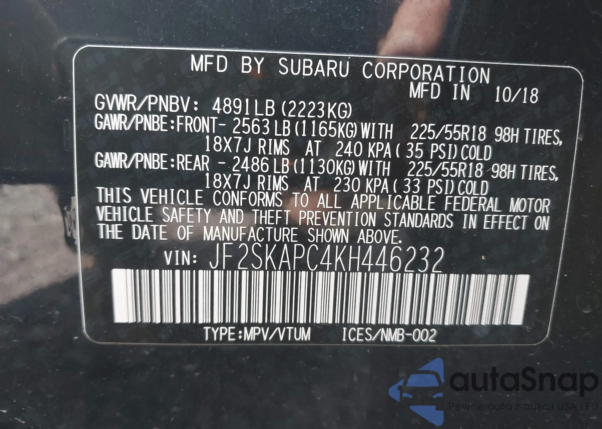 • VIN JF2SKAPC4KH446232