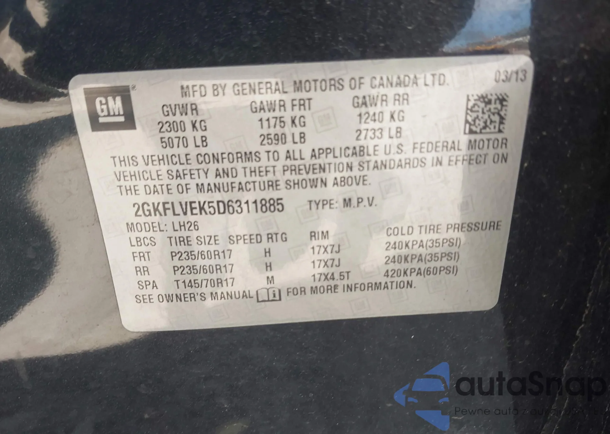 • VIN 2GKFLVEK5D6311885