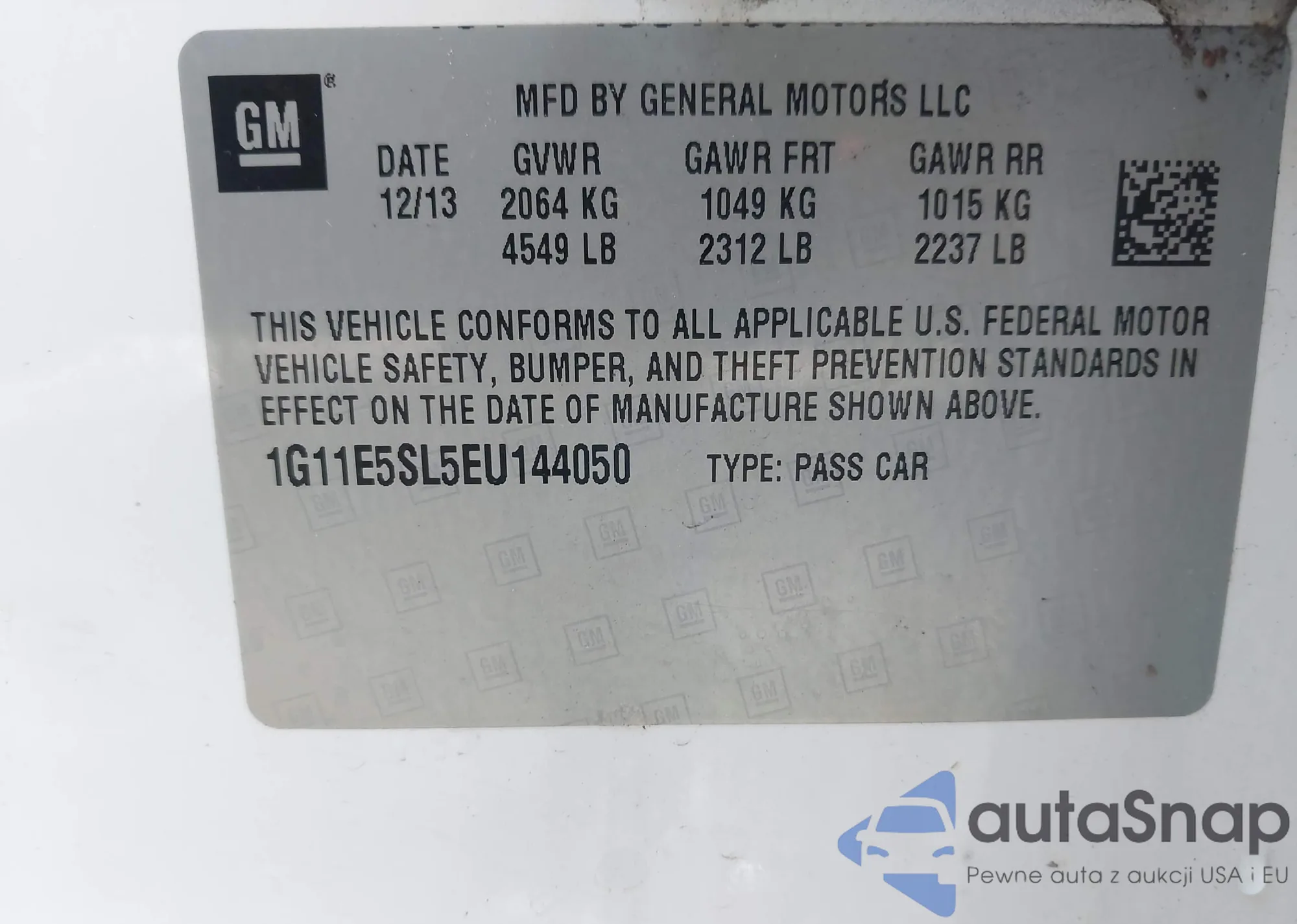 LOT: 42314947 VIN: 1G11E5SL5EU144050