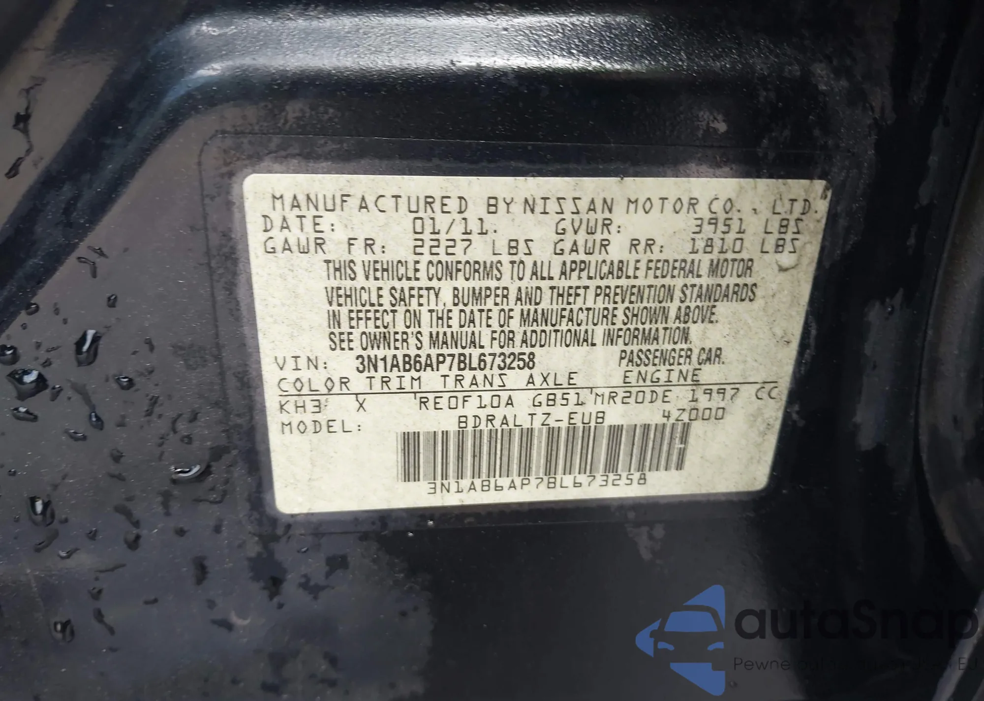 • VIN 3N1AB6AP7BL673258