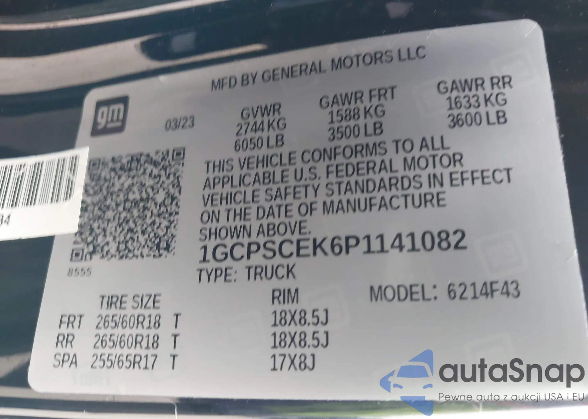 • VIN 1GCPSCEK6P1141082