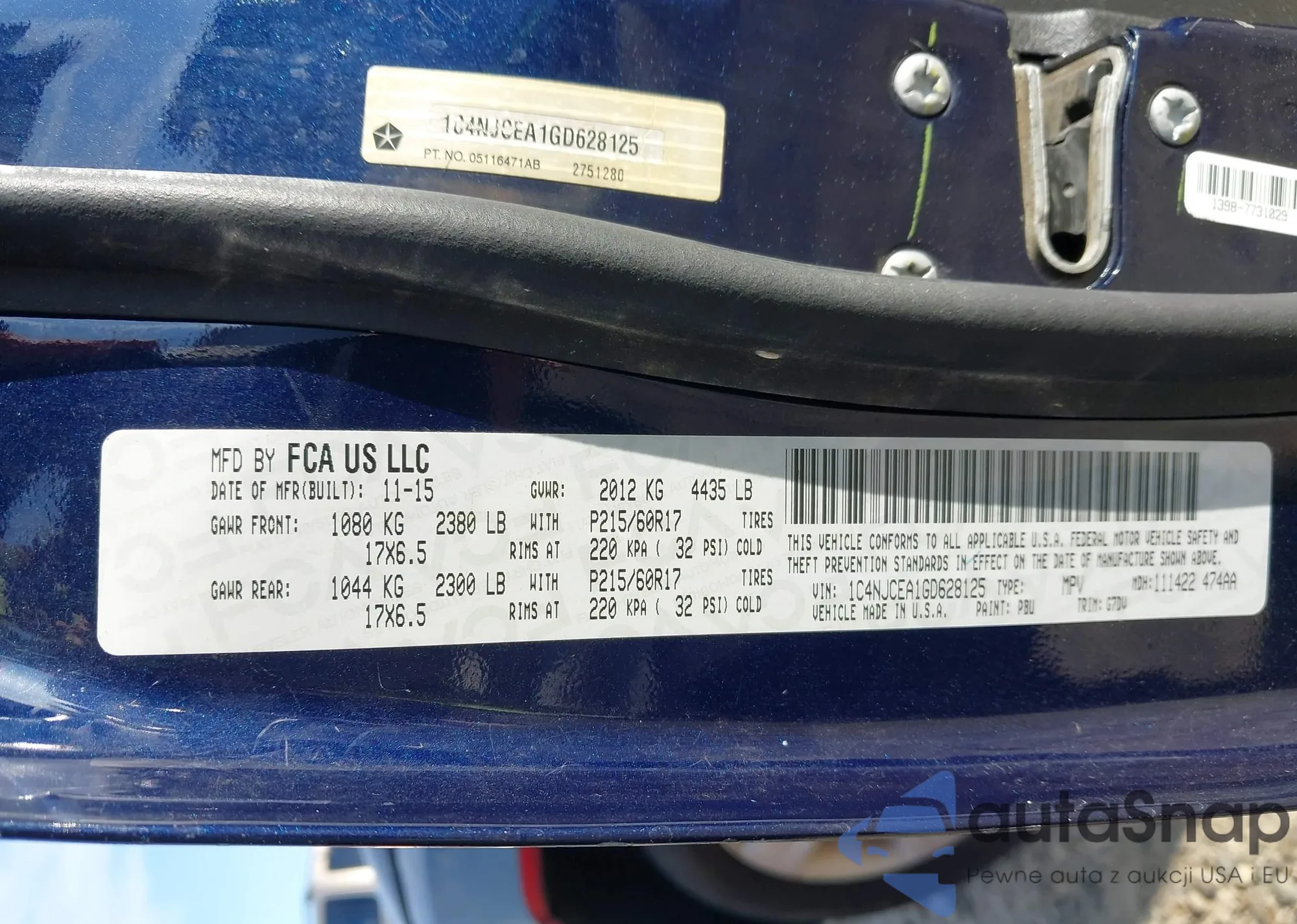 LOT: 42501241 VIN: 1C4NJCEA1GD628125
