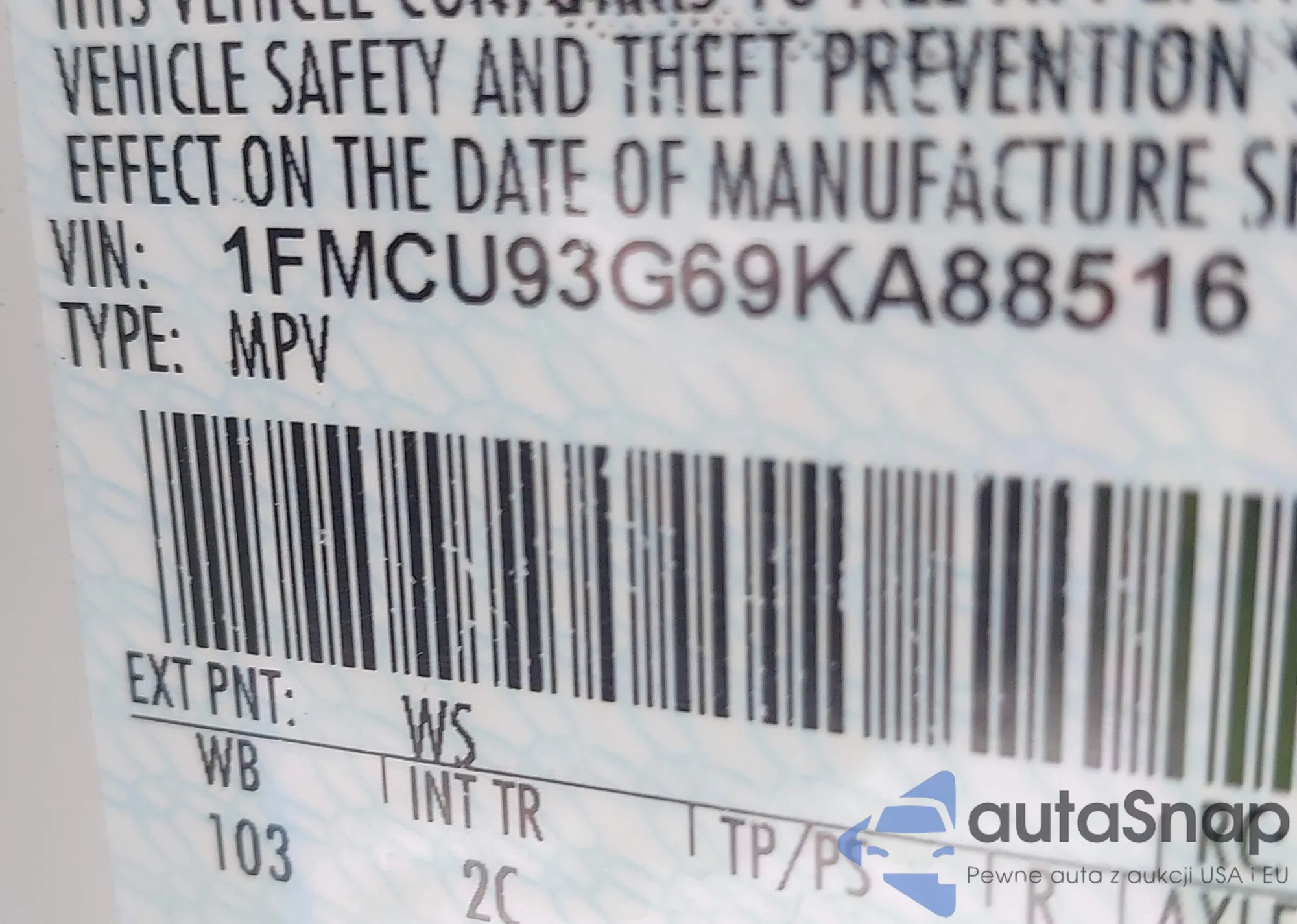 • VIN 1FMCU93G69KA88516