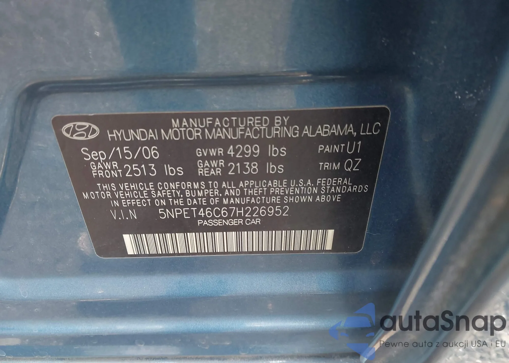 LOT: 42162306 VIN: 5NPET46C67H226952