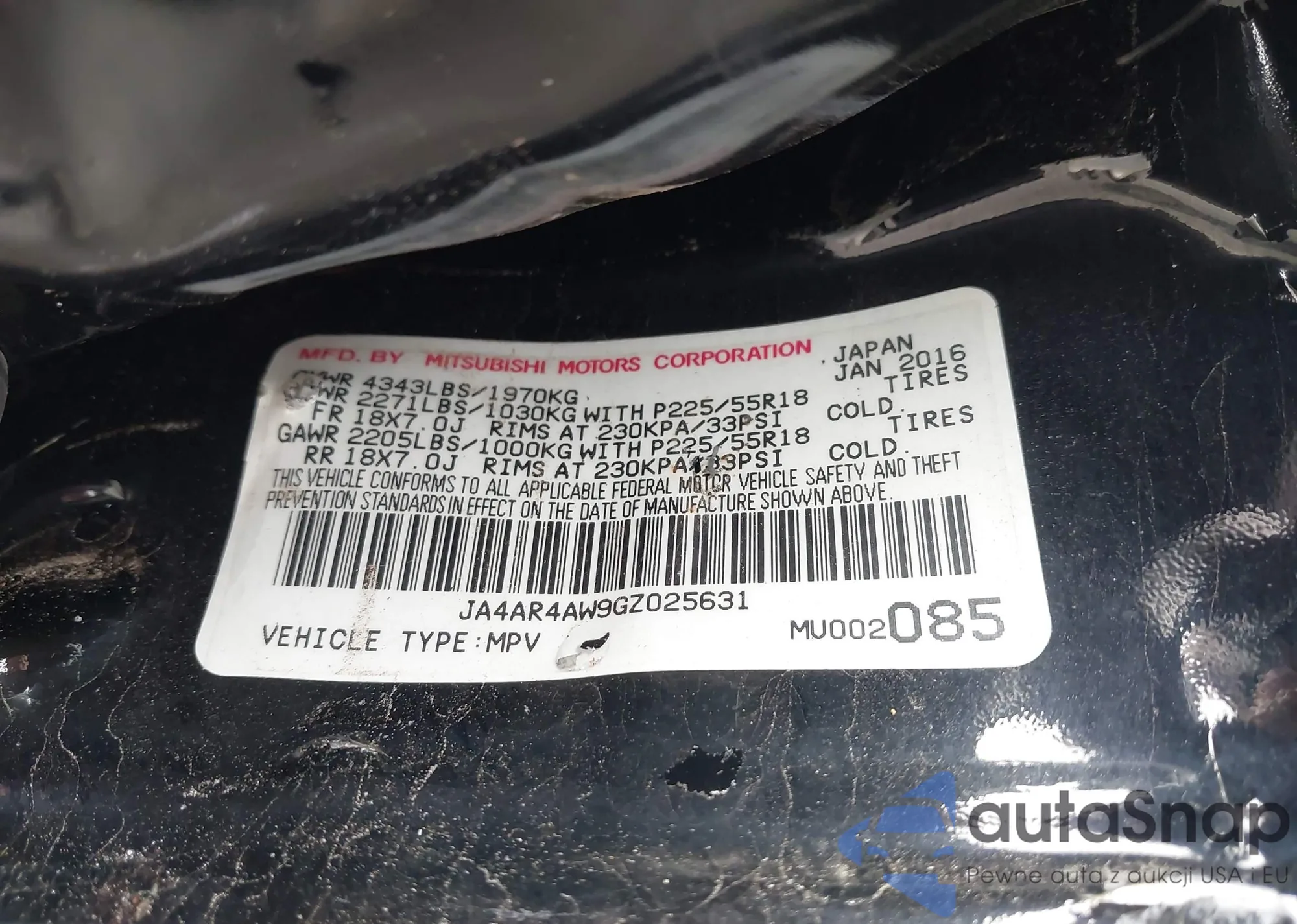 • VIN JA4AR4AW9GZ025631