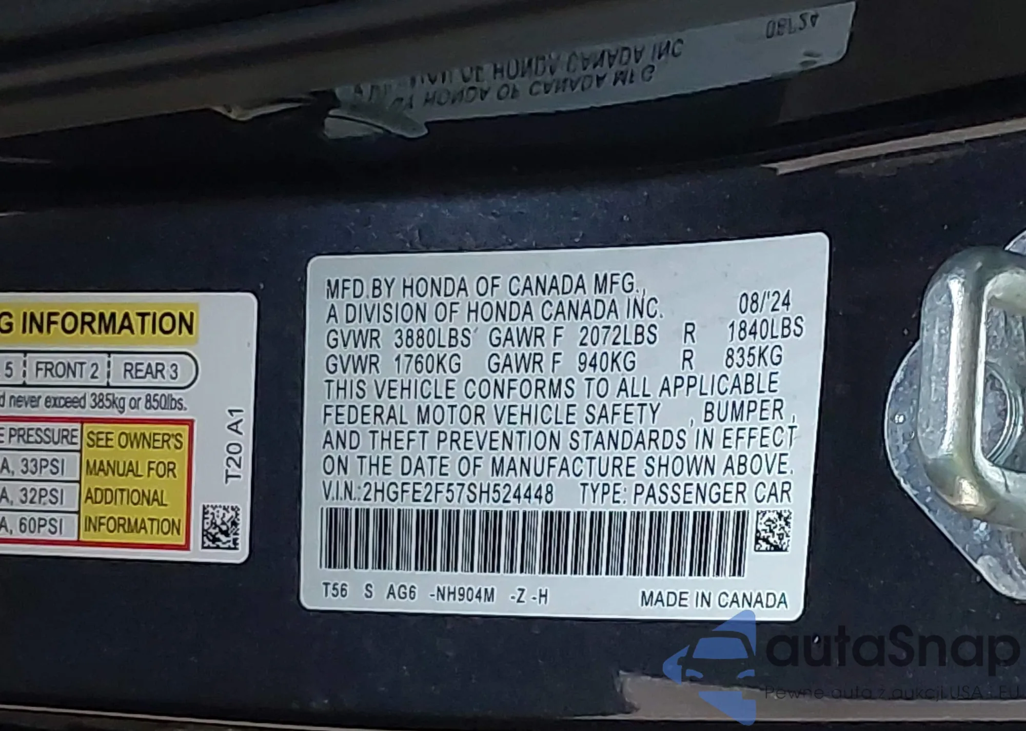 • VIN 2HGFE2F57SH524448