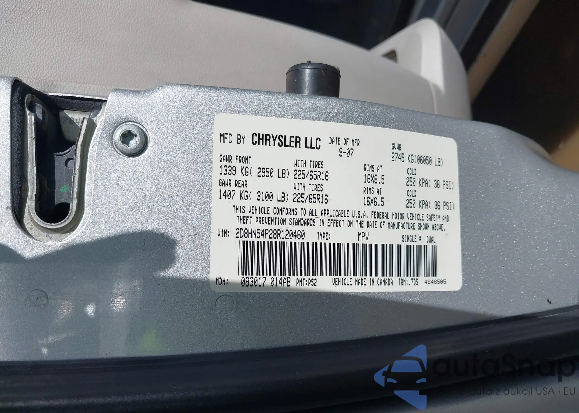 LOT: 42385763 VIN: JTEDP21A840042076