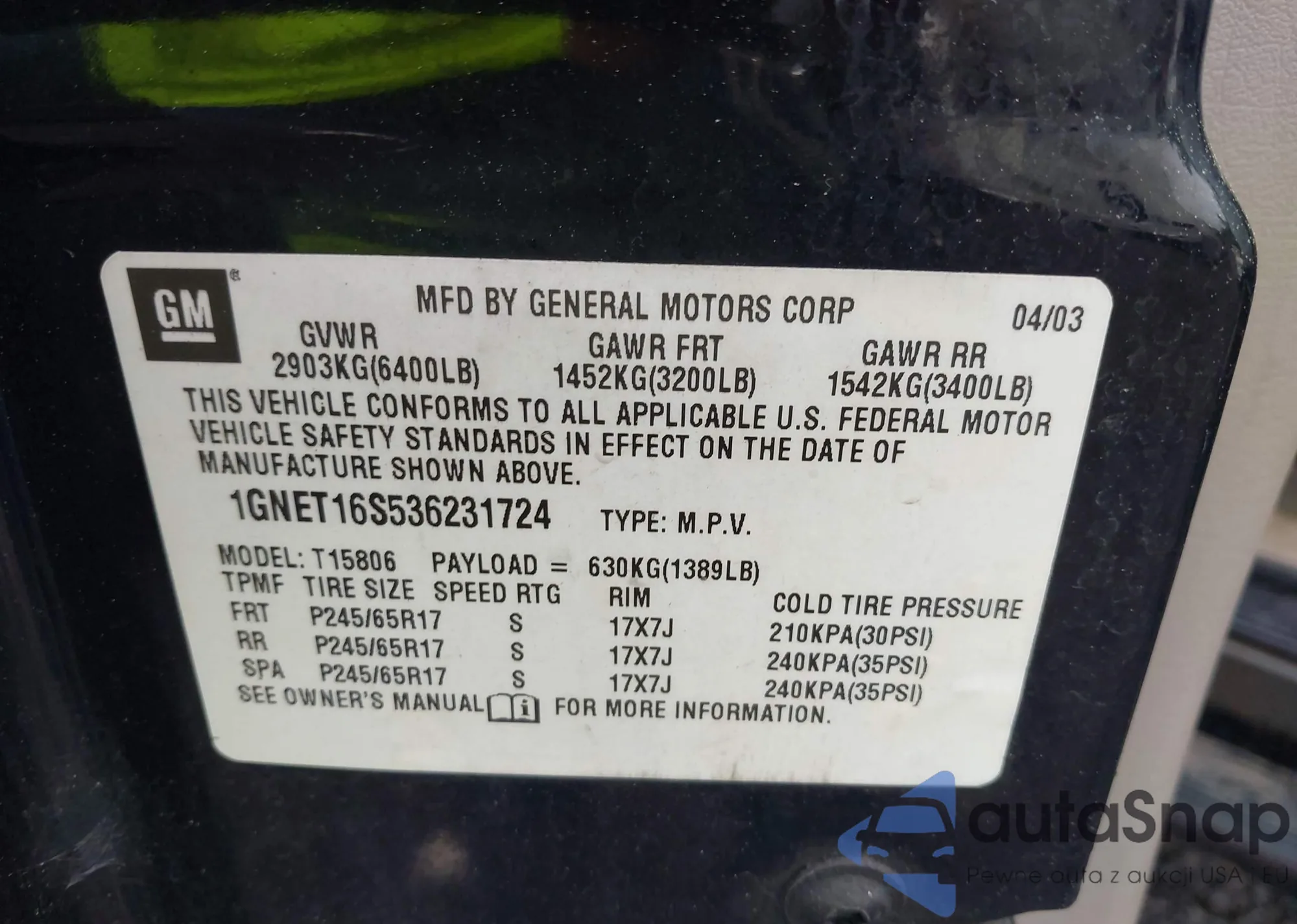 LOT: 42452582 VIN: 1GNET16S536231724