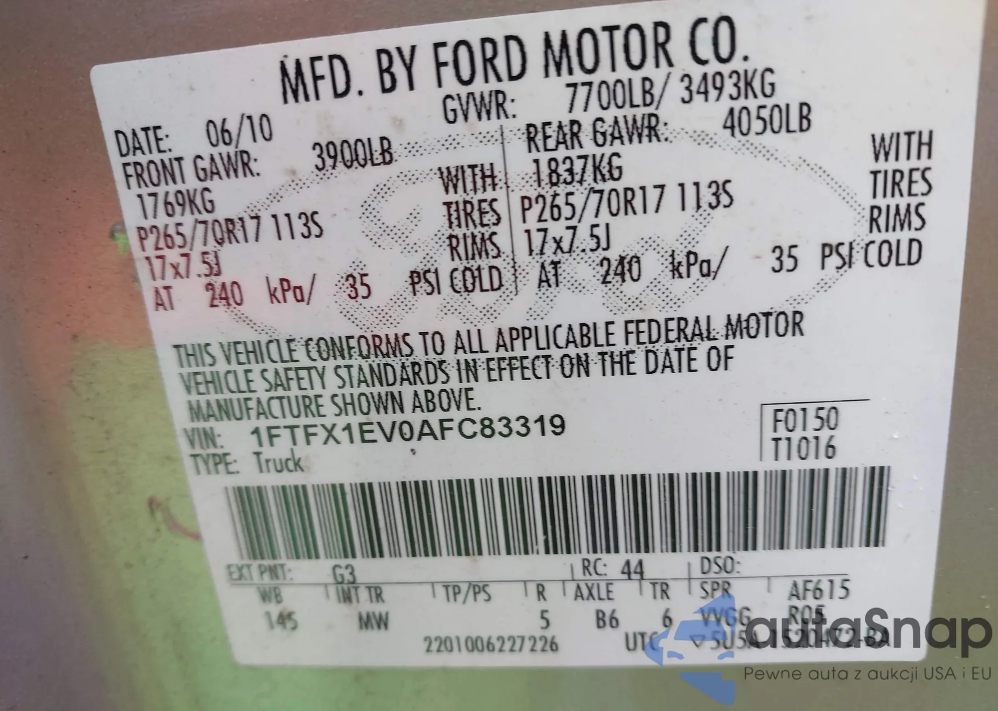 • VIN 2FMPK4K90GBC66750