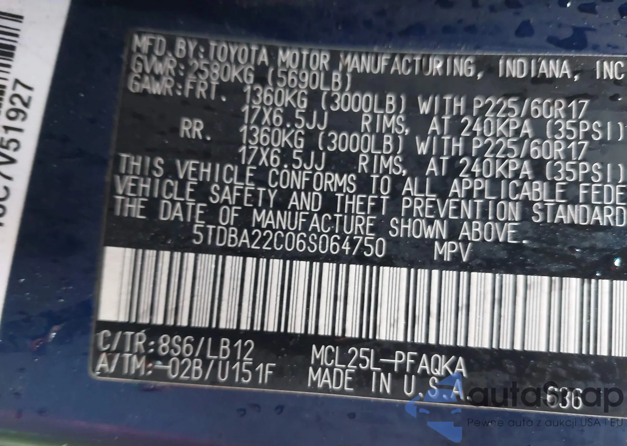 LOT: 42343751 VIN: 5TDBA22C06S064750