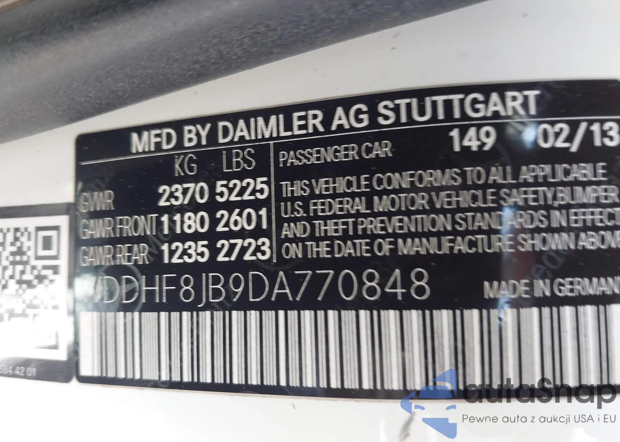• VIN WDDHF8JB9DA770848
