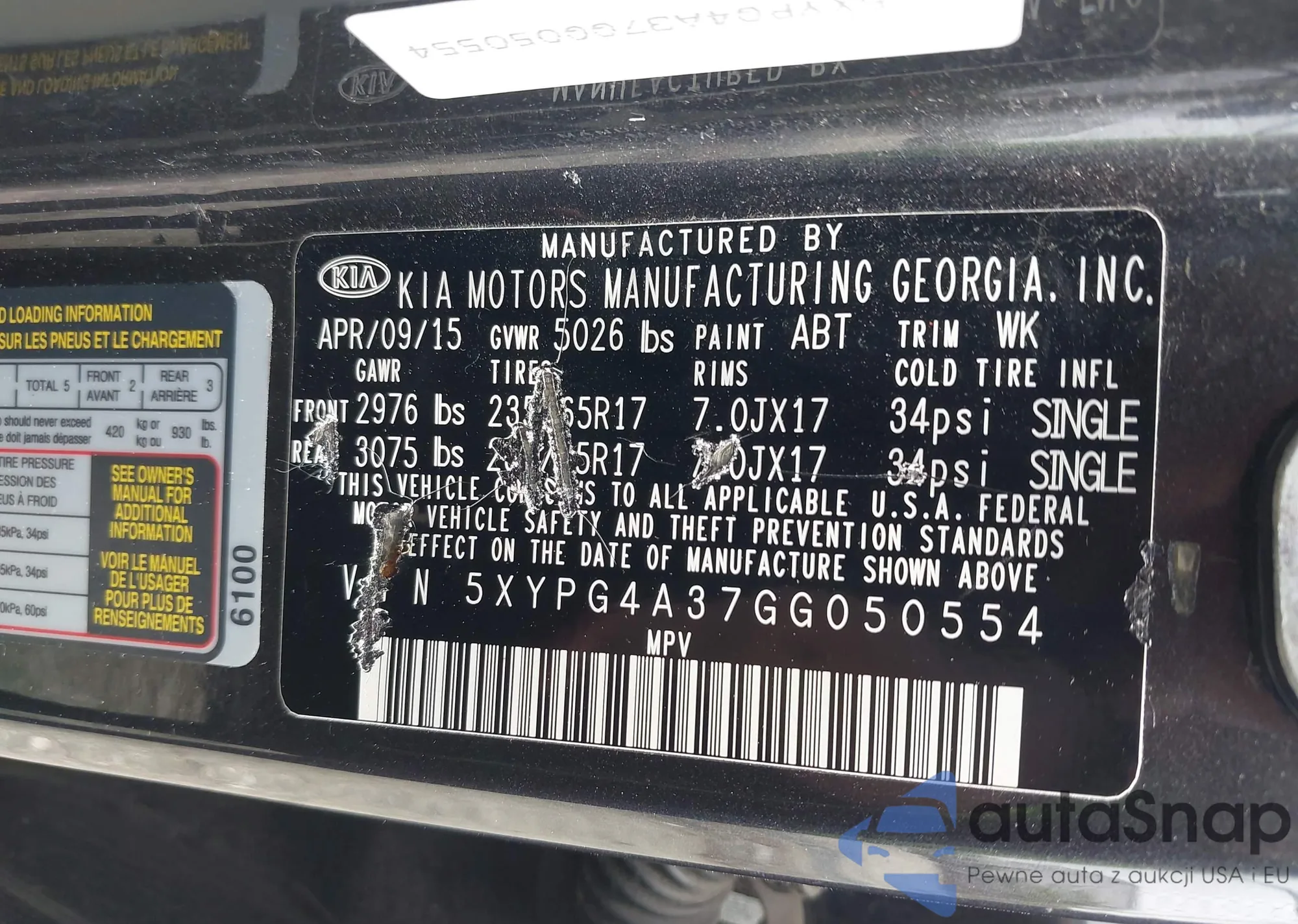 • VIN 5XYPG4A37GG050554