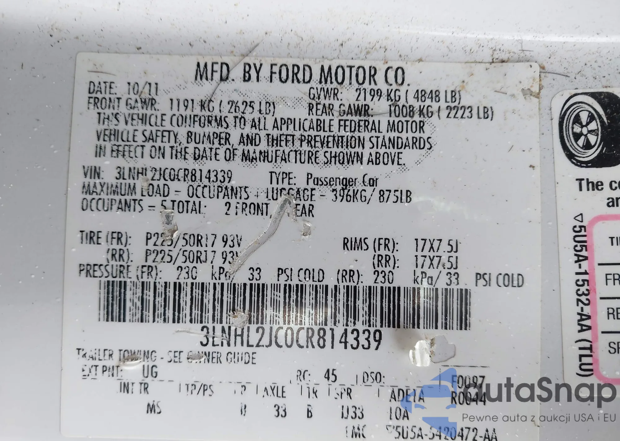 LOT: 42346806 VIN: 3LNHL2JC0CR814339