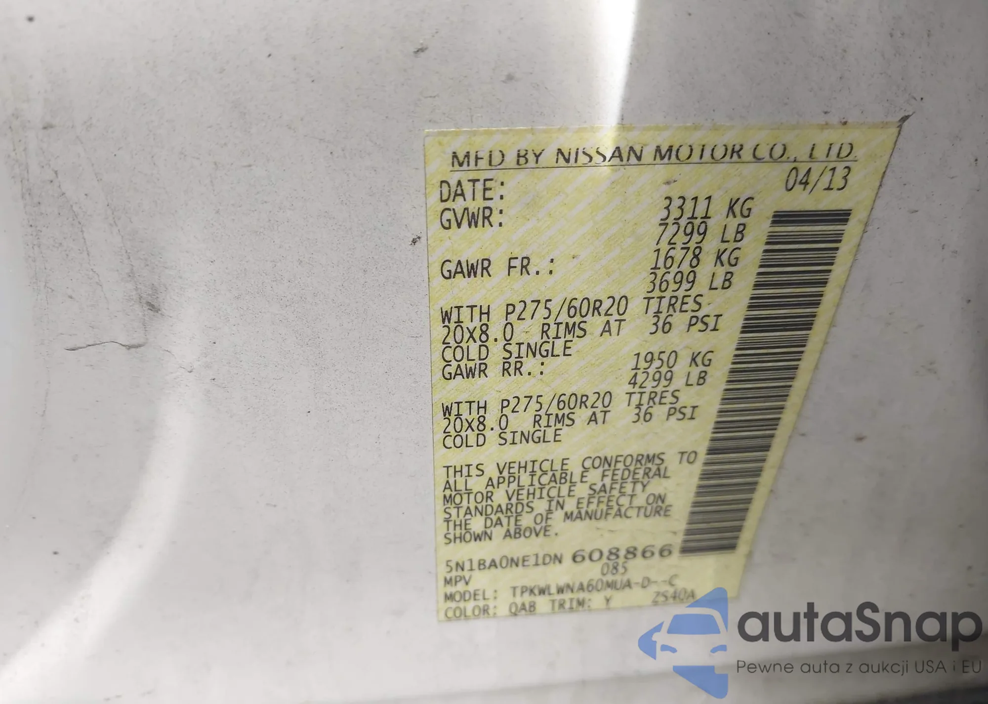 LOT: 42350602 VIN: 5N1BA0NE1DN608866