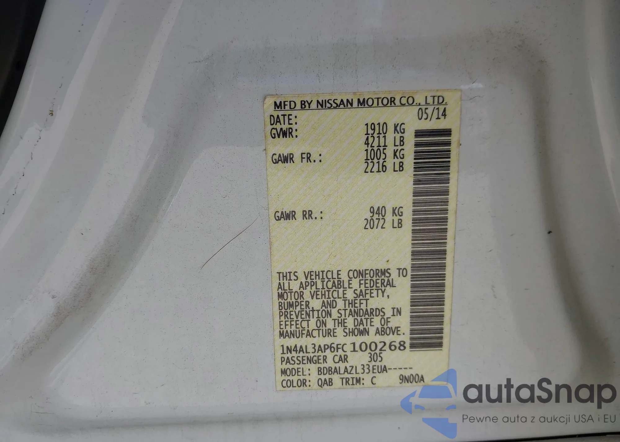 • VIN 1N4AL3AP8DC211398