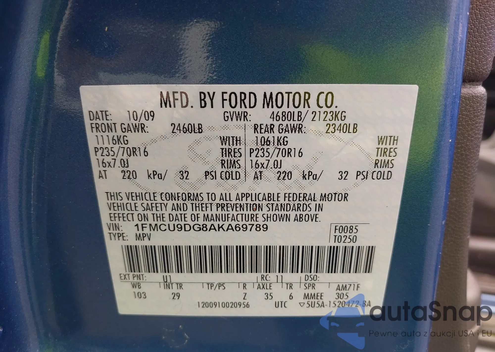 LOT: 42440332 VIN: 1FMCU9DG8AKA69789