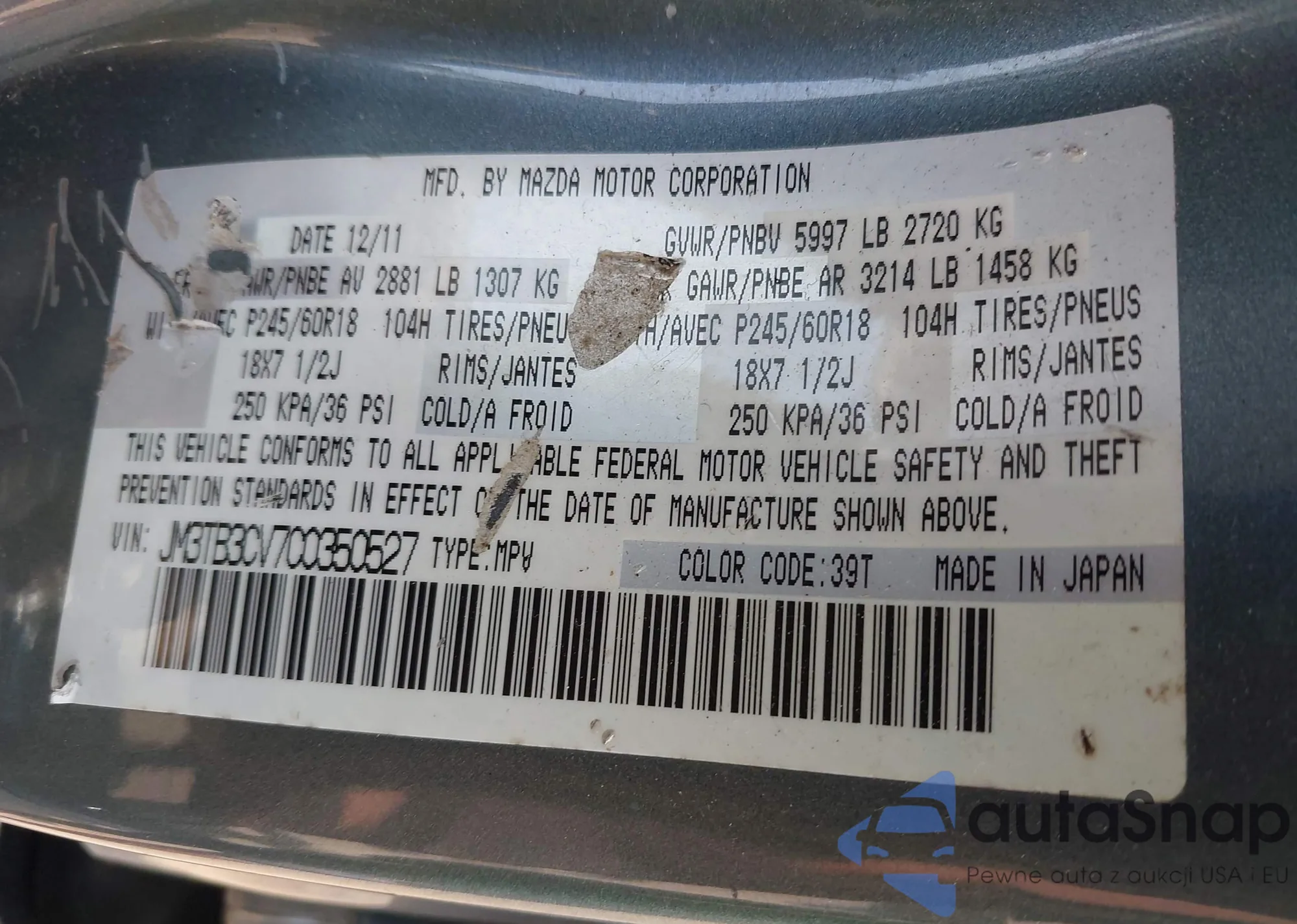 • VIN JM3TB3CV7C0350527