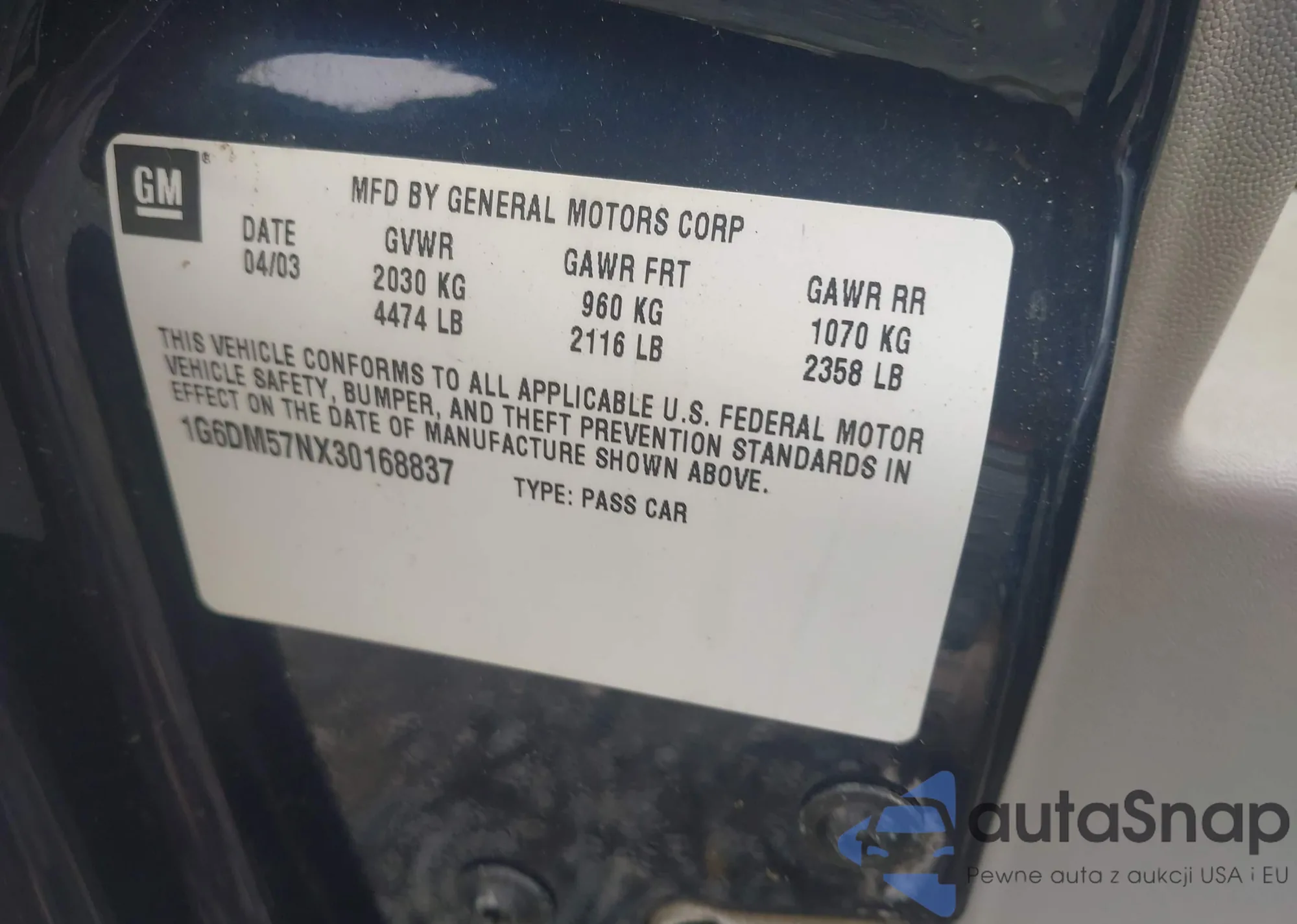 • VIN 1G6DM57NX30168837