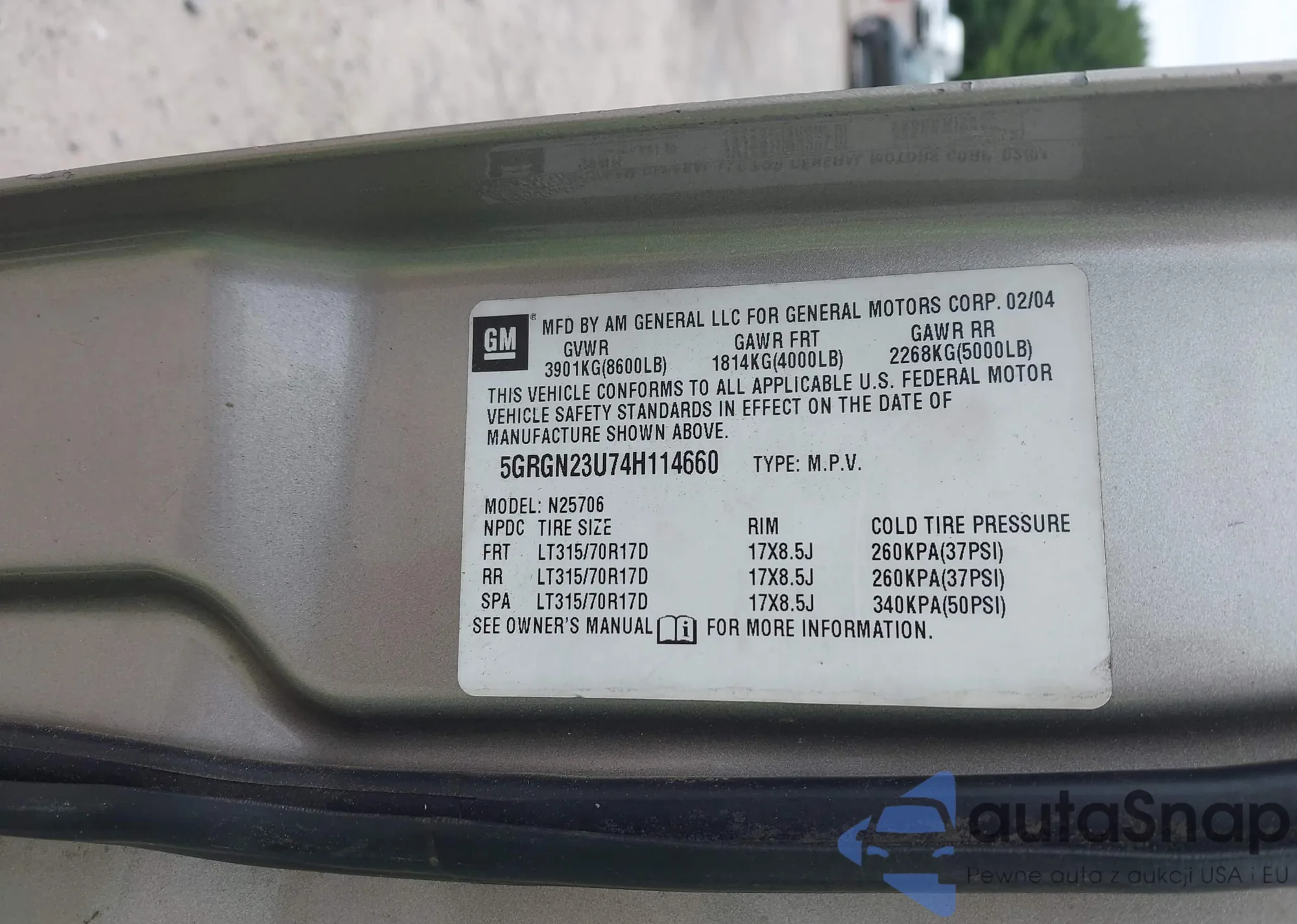 • VIN WMWMR3C52ATU97825