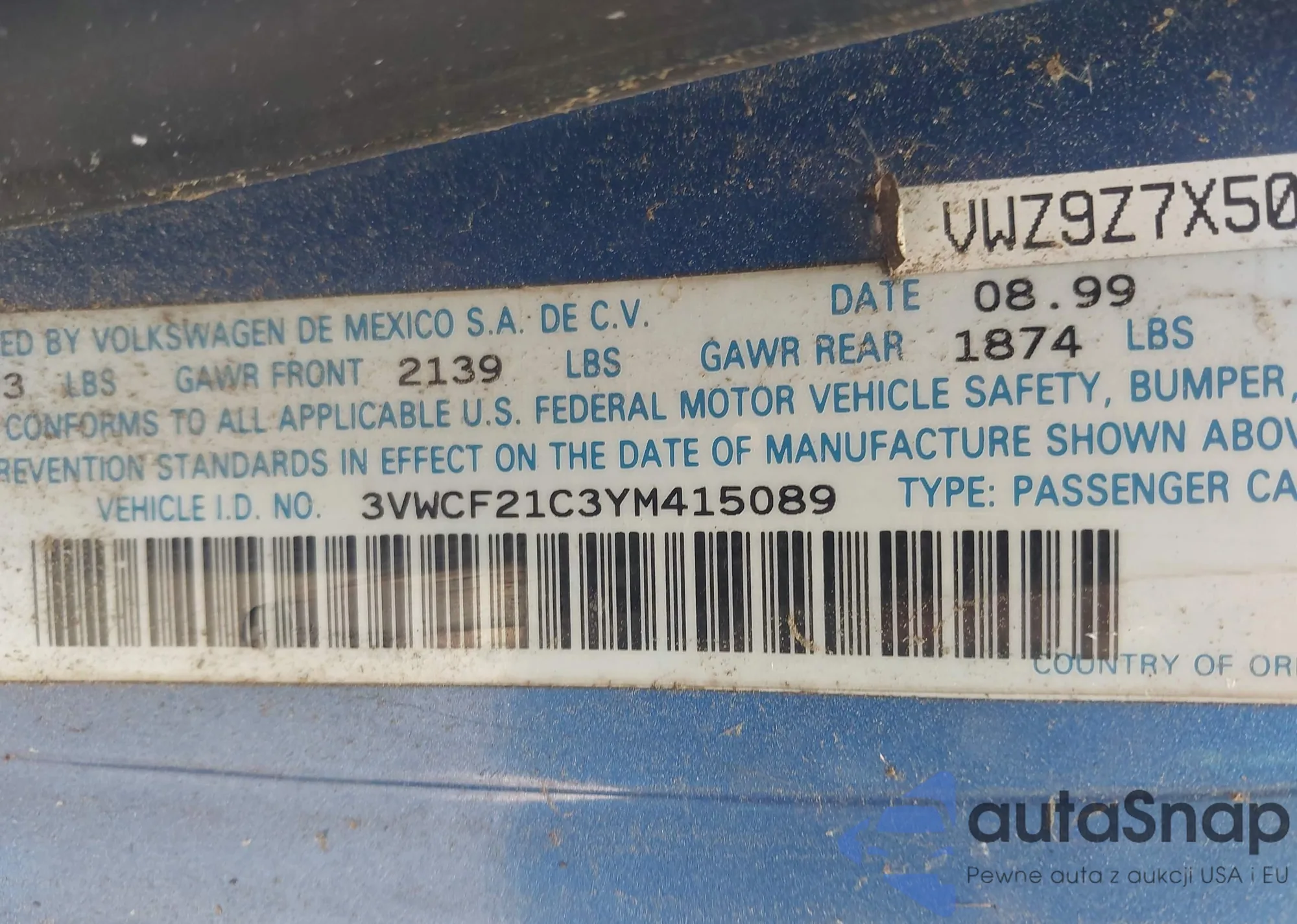 • VIN 3VWCF21C3YM415089