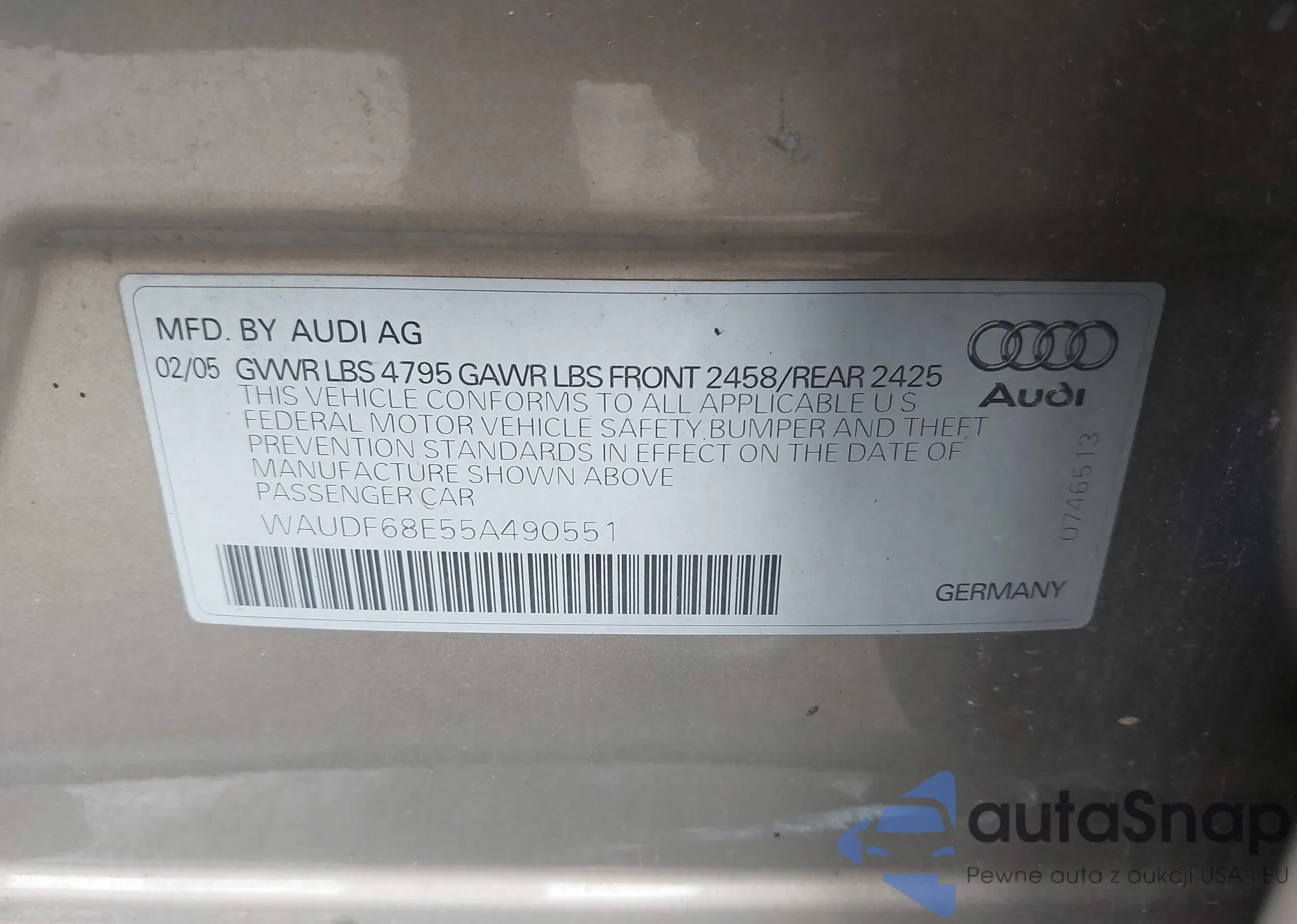 • VIN WAUDF68E55A490551