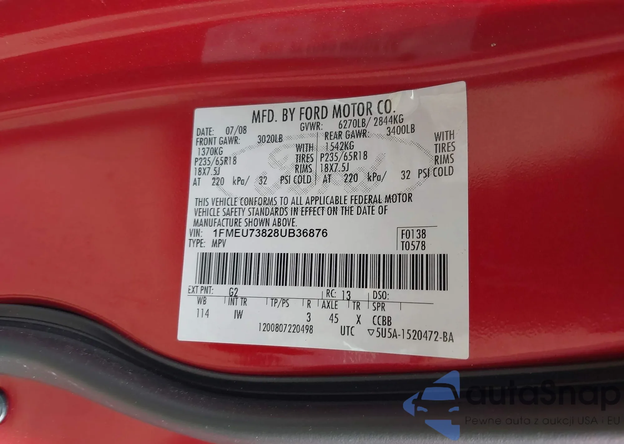 LOT: 42417344 VIN: 1FMEU73828UB36876