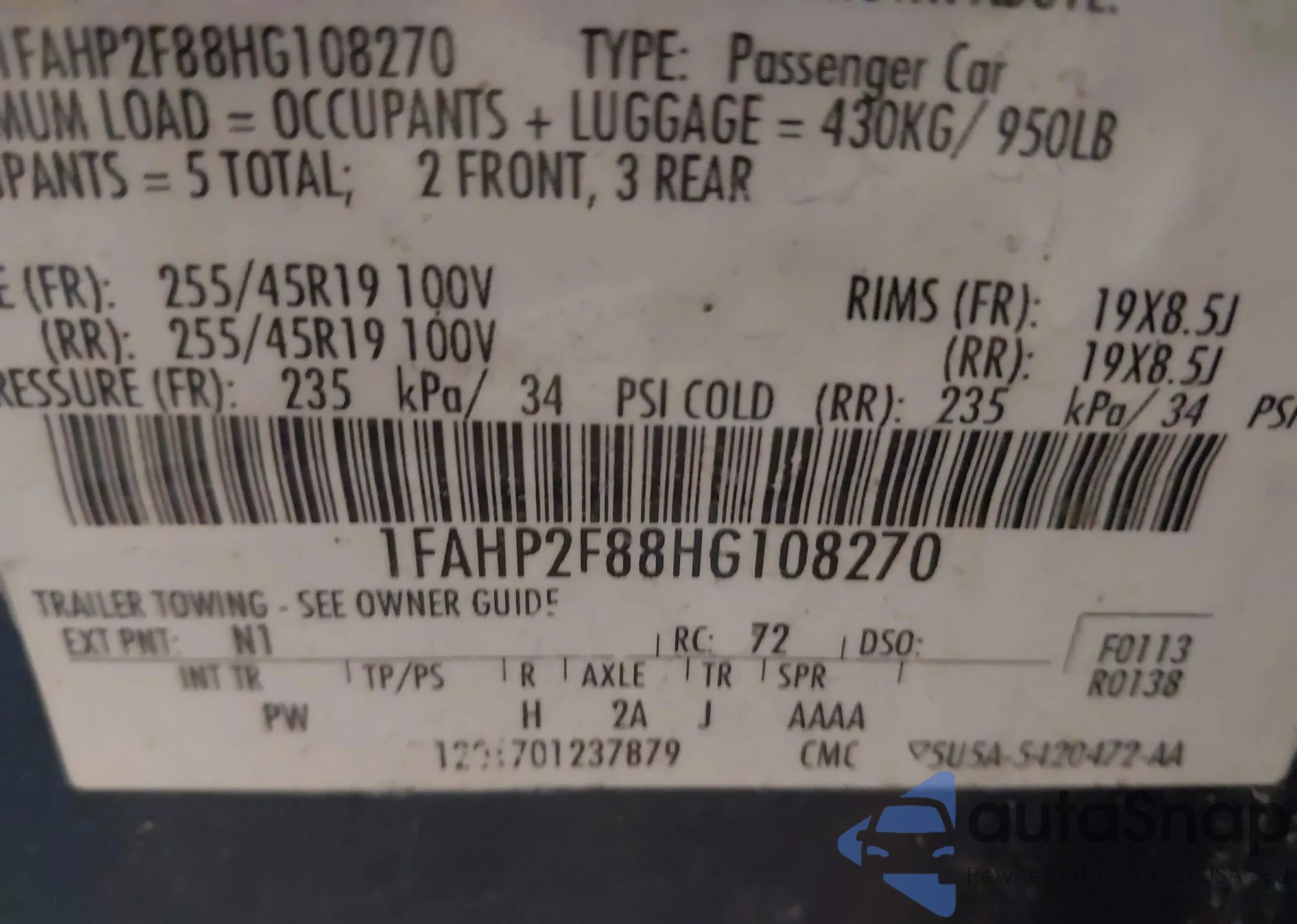 • VIN 1FAHP2F88HG108270