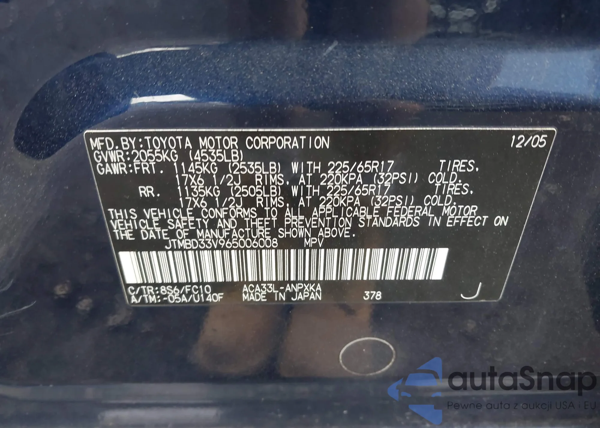 • VIN 2T1BU4EE8AC435333