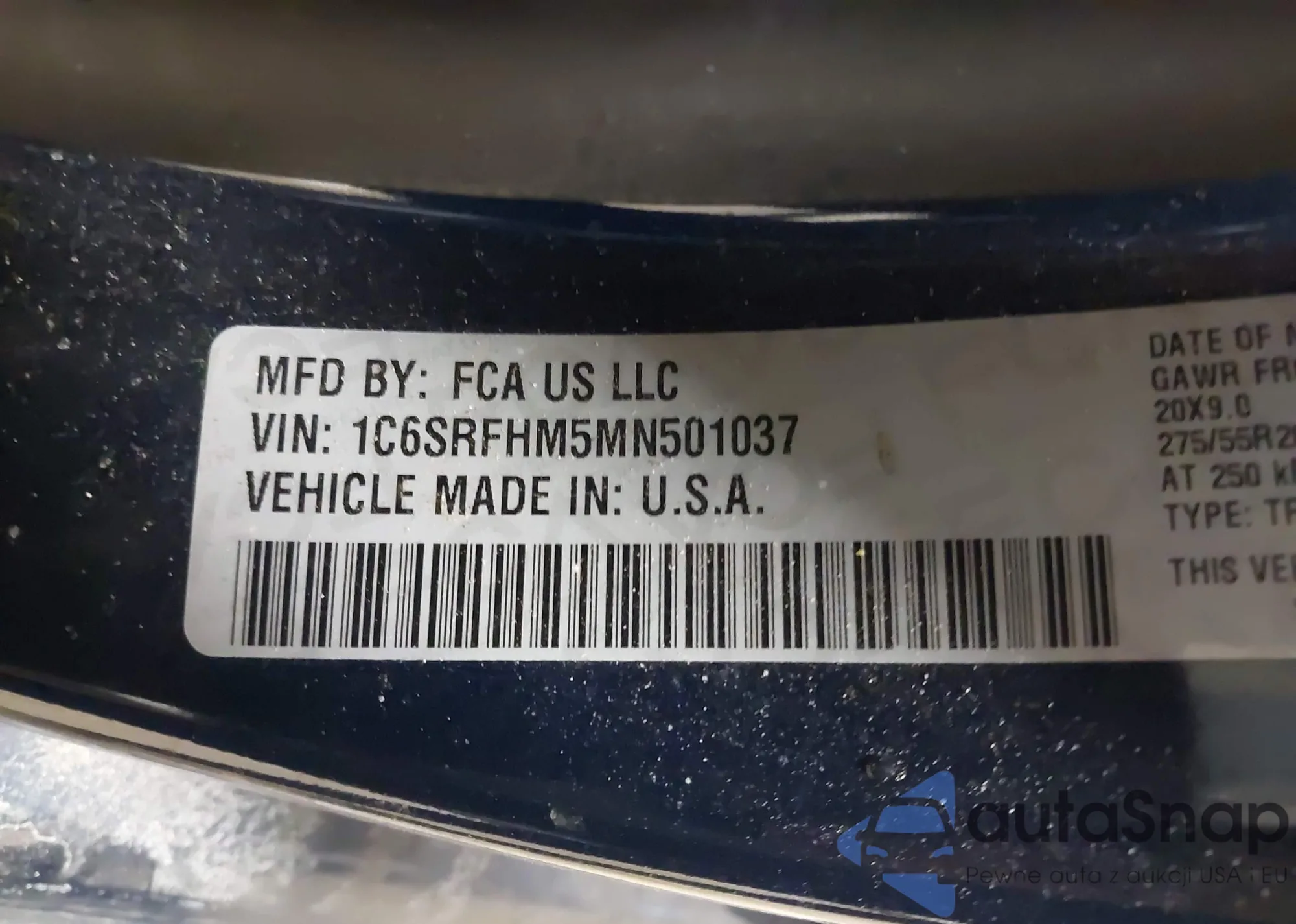 • VIN 1C6SRFHM5MN501037