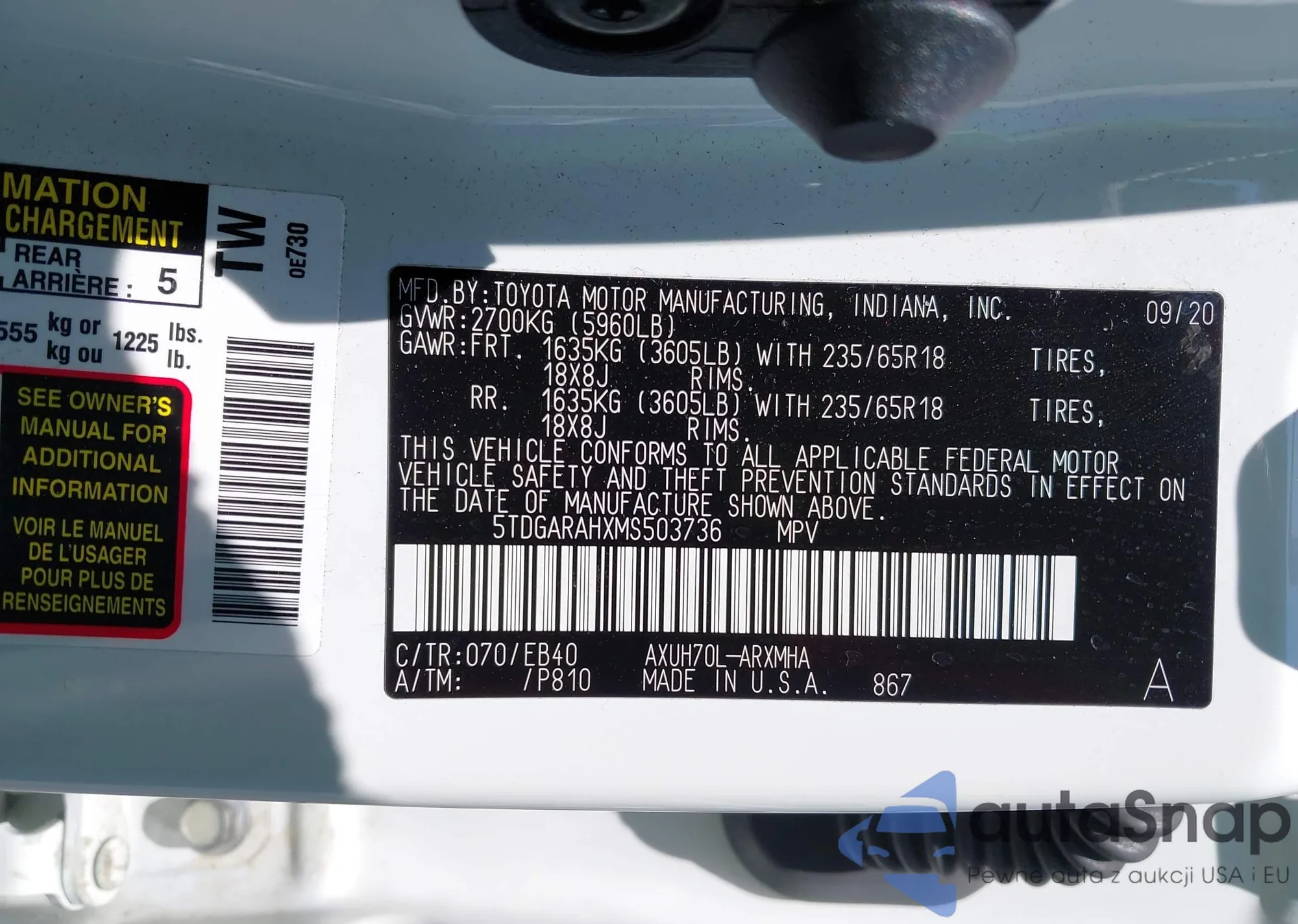 • VIN 5TDGARAHXMS503736