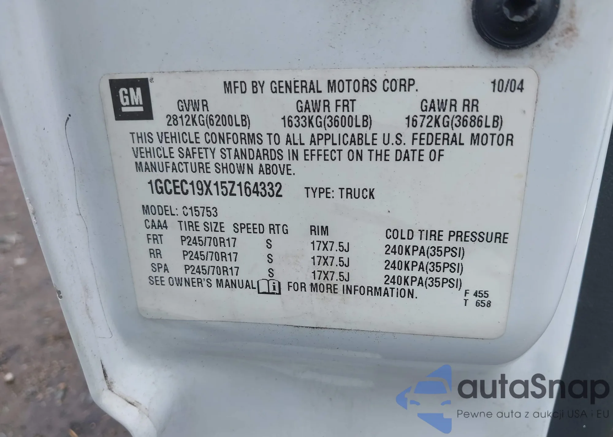 • VIN 1GCEC19X15Z164332