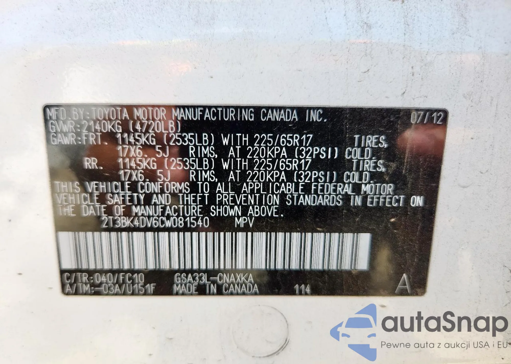 • VIN 1N4AA5AP6CC860178