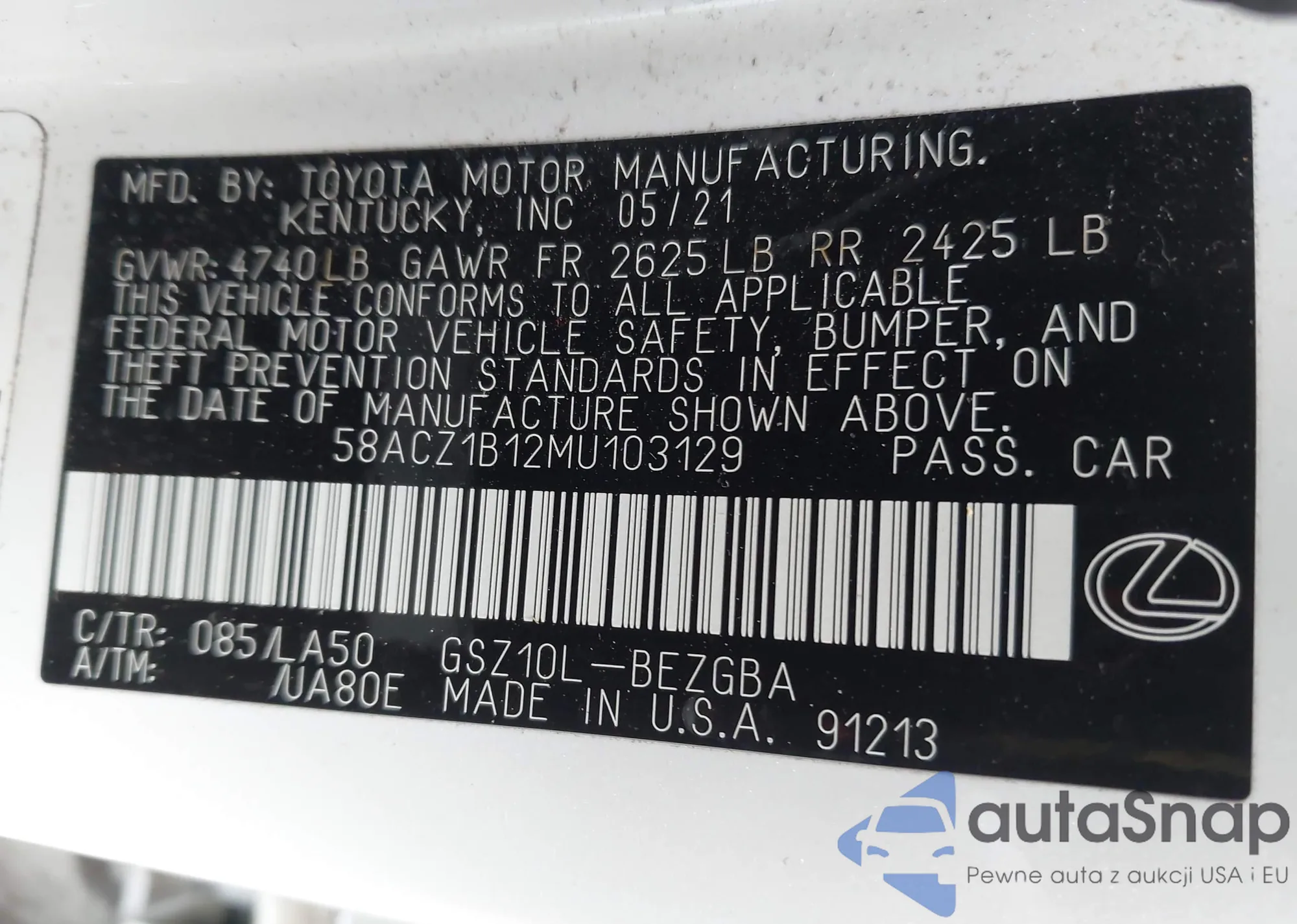 LOT: 42337504 VIN: JTMZF33V395006552