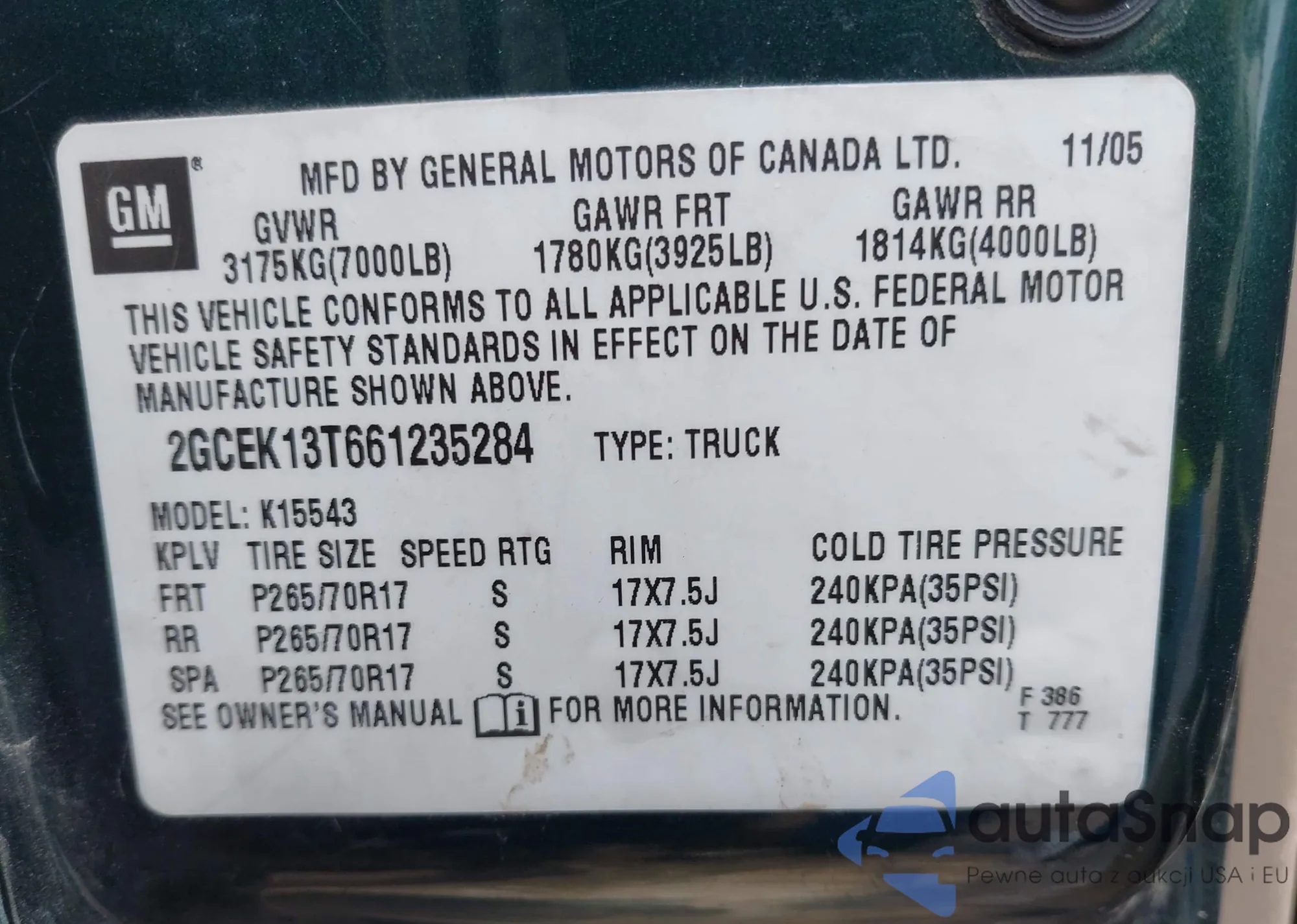 • VIN 2GCEK13T661235284