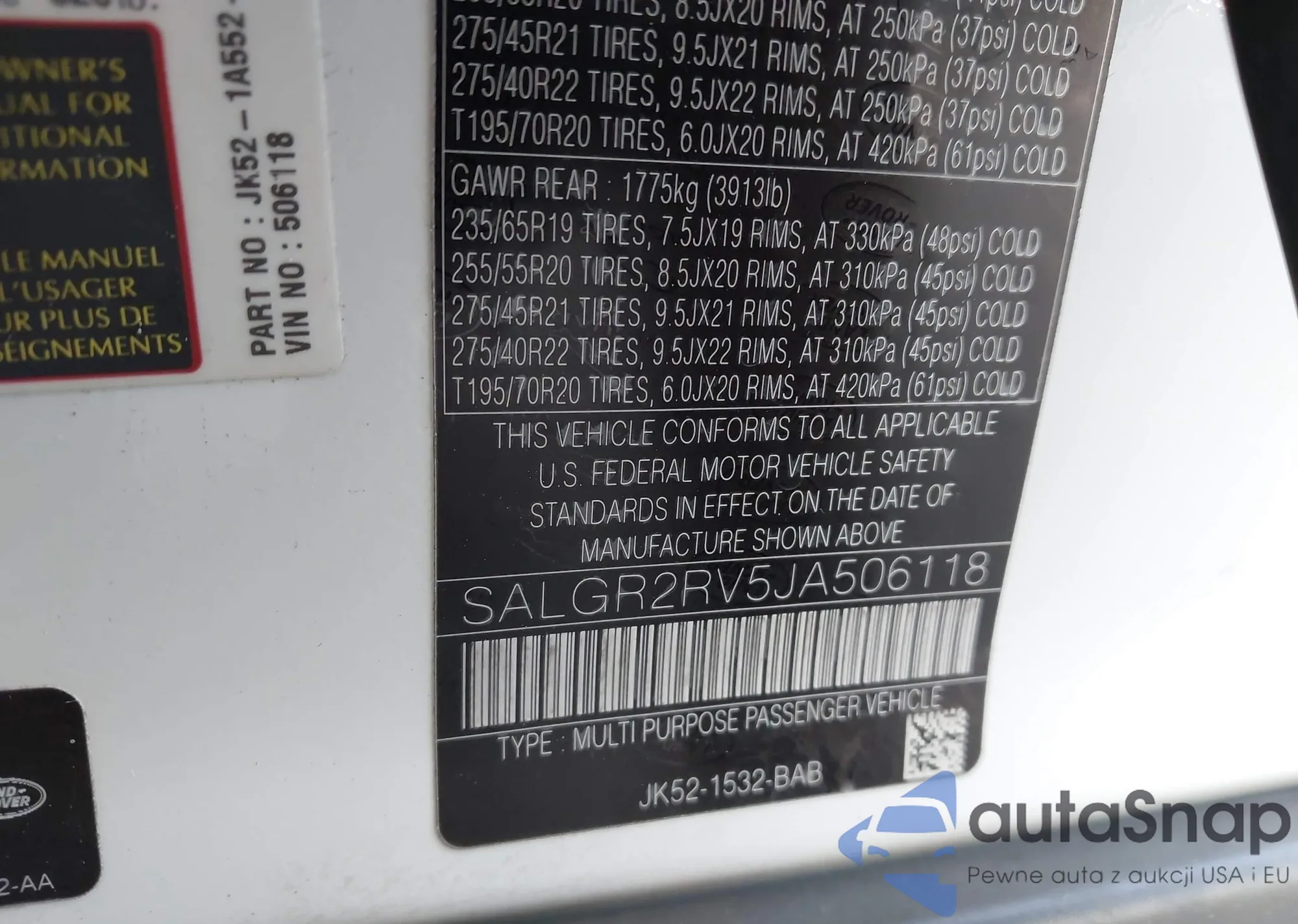 • VIN SALGR2RV5JA506118