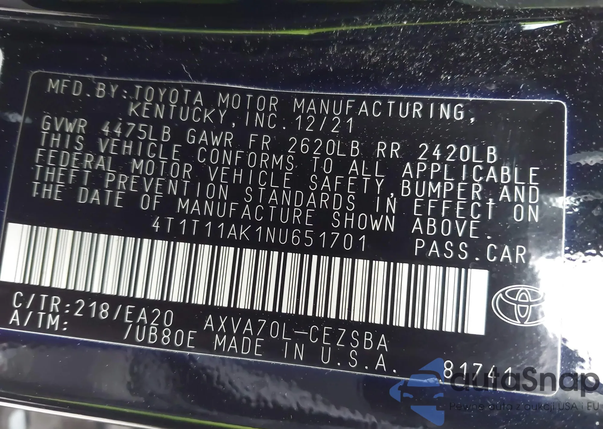 • VIN 4T1BF1FKXEU765184