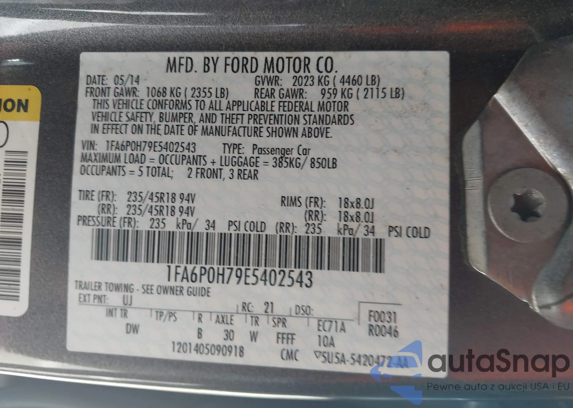 • VIN 1FA6P0H79E5402543