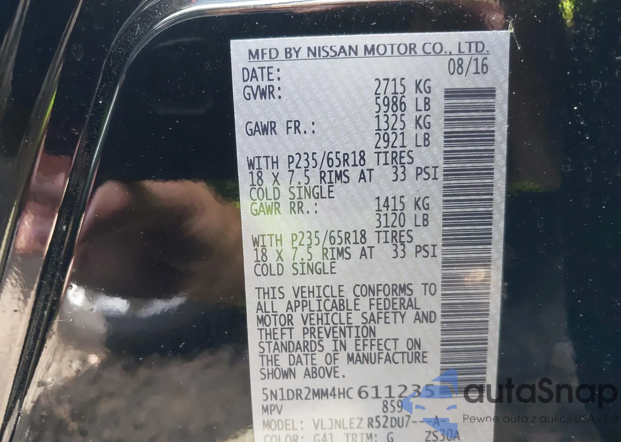 • VIN 5N1DR2MM4HC611235