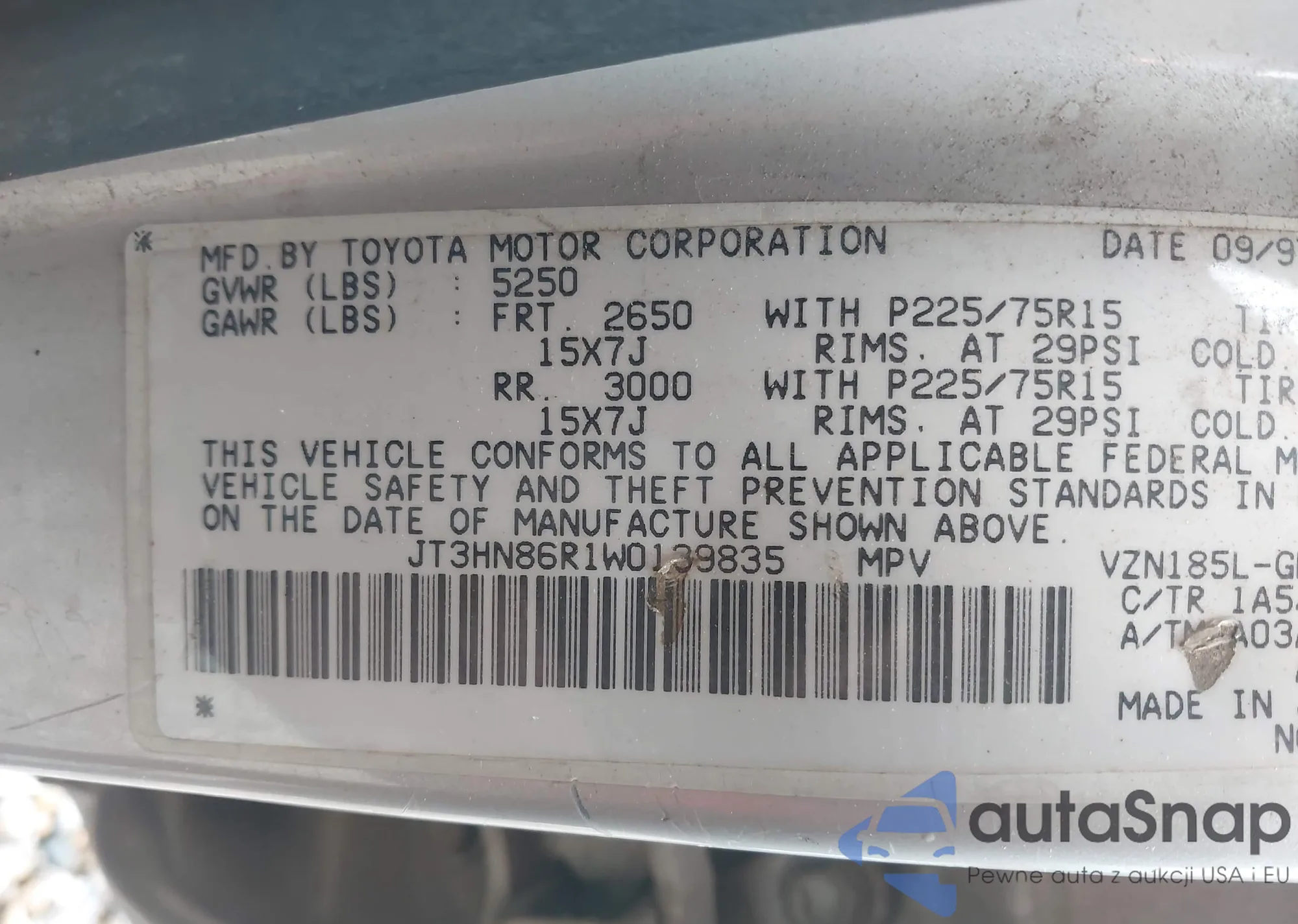 • VIN JN8AS5MT7BW182106