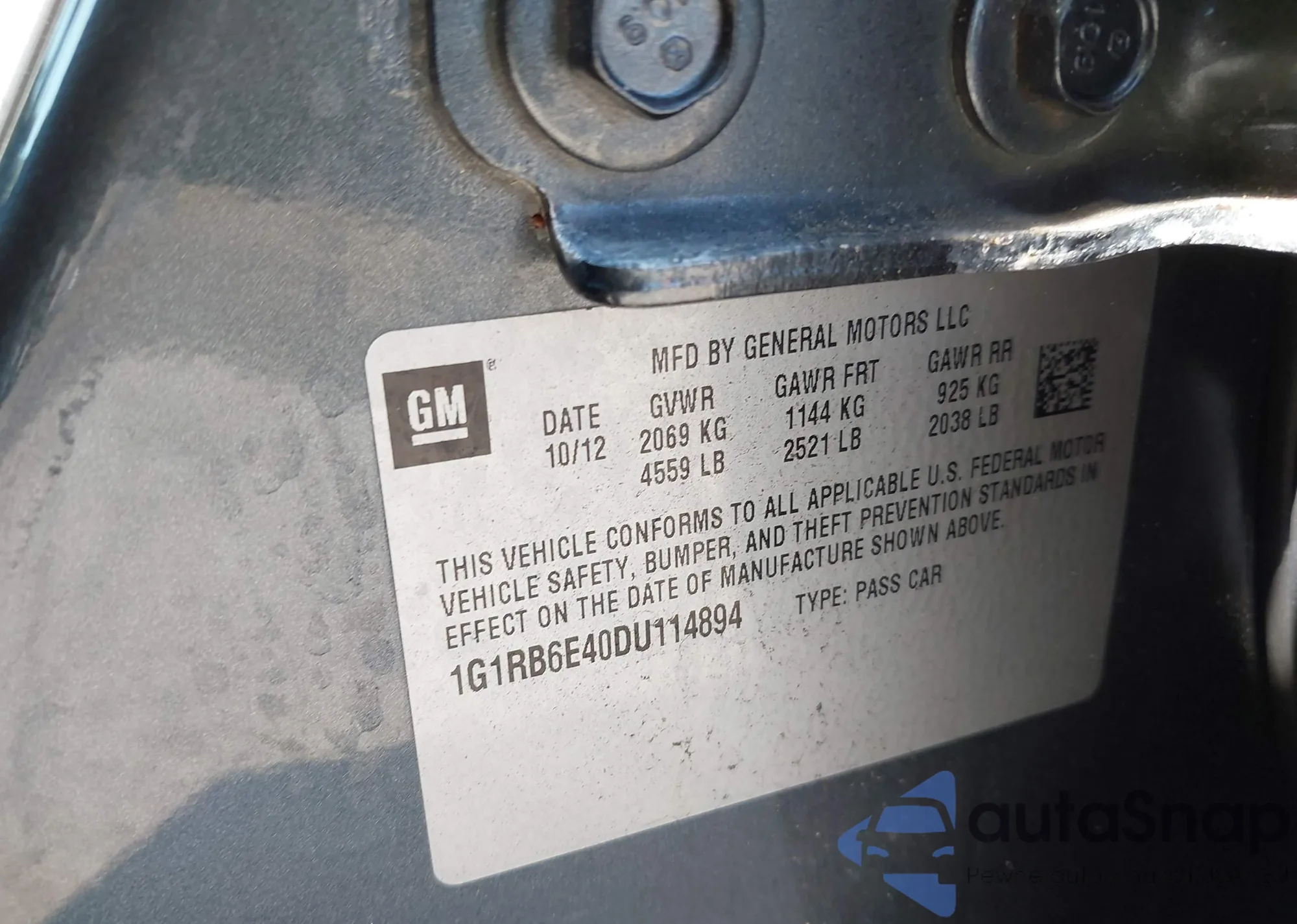 • VIN 1G1RB6E40DU114894