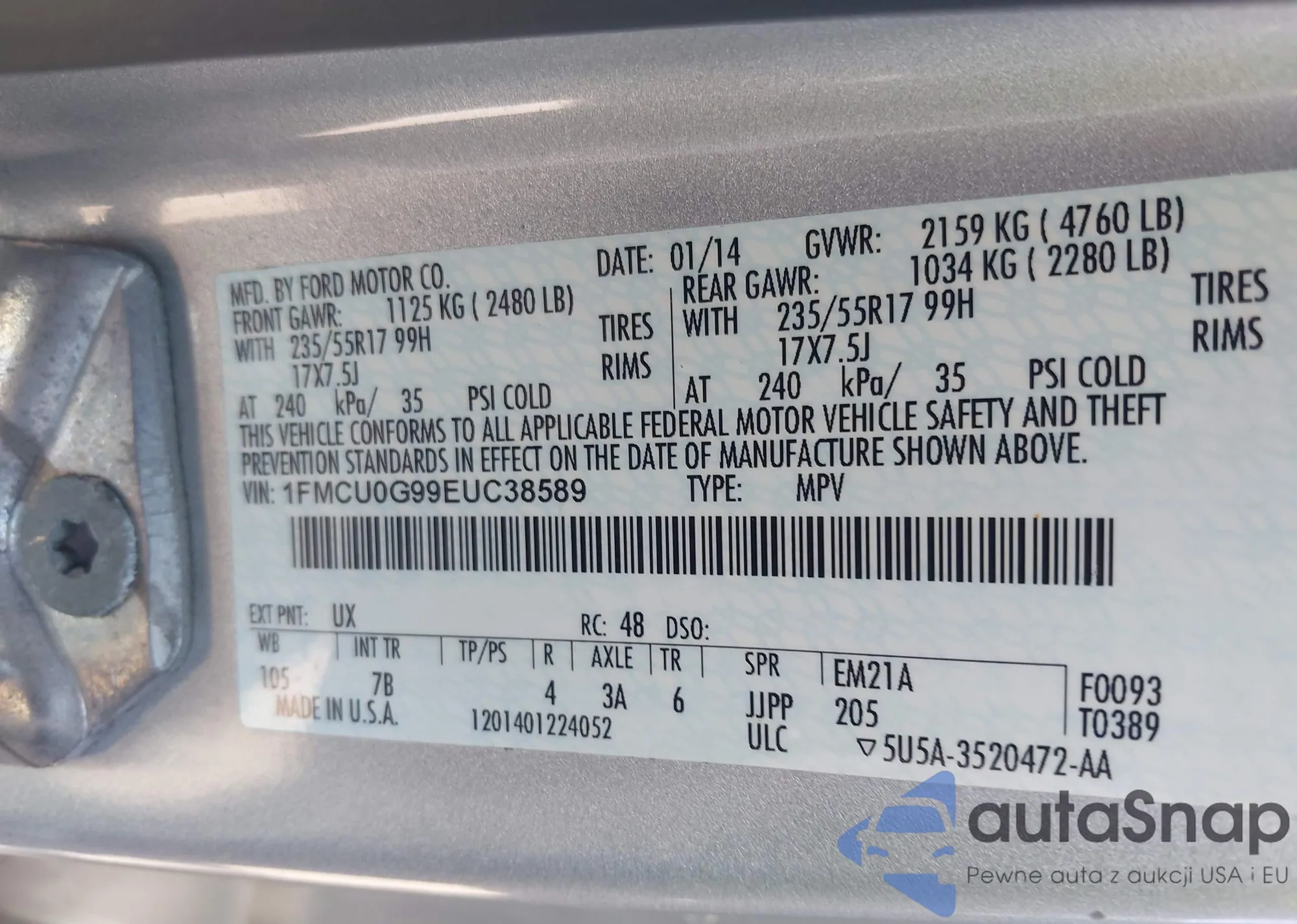 LOT: 42201138 VIN: 1FMCU0G99EUC38589