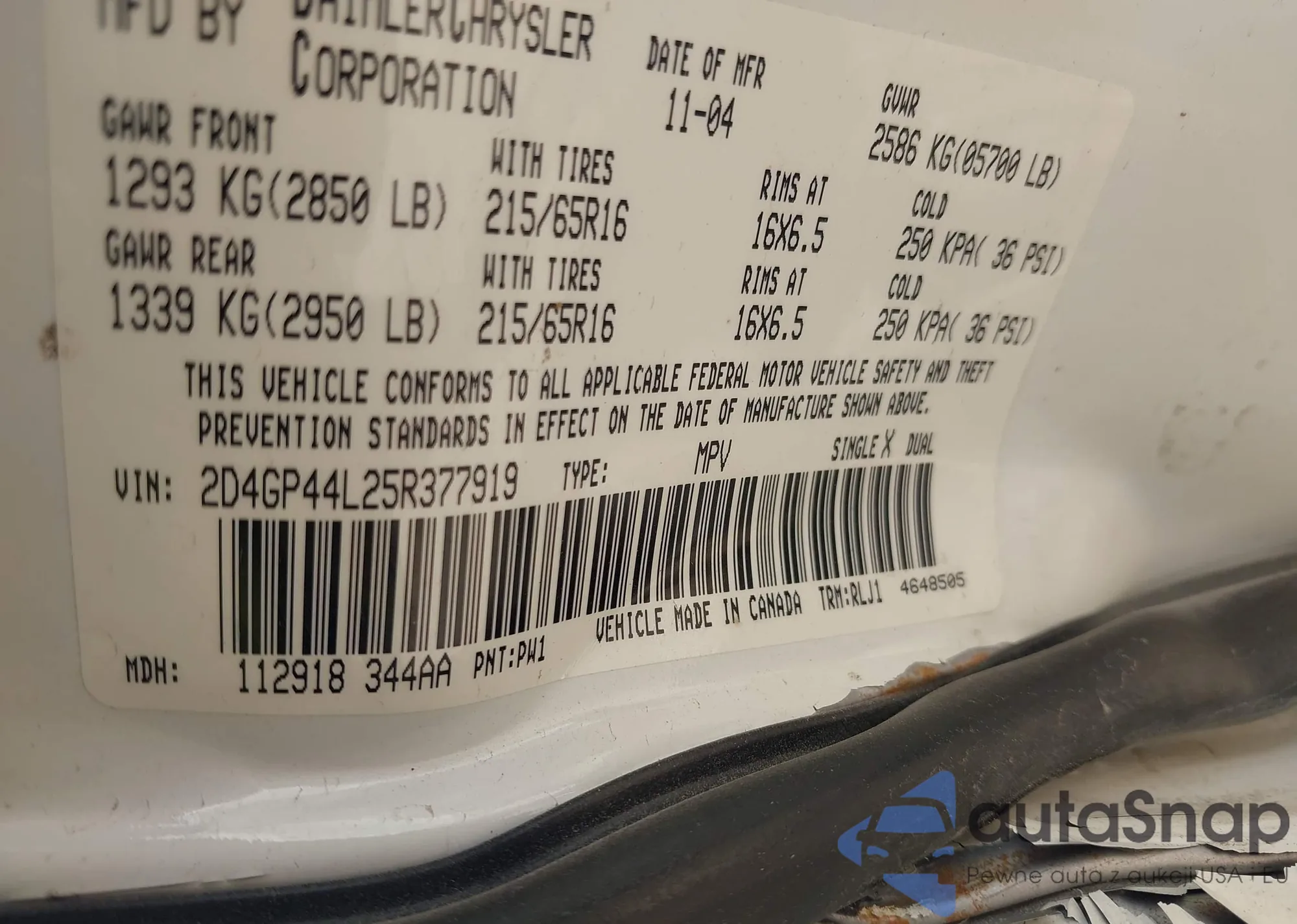 LOT: 42215903 VIN: 2D4GP44L25R377919