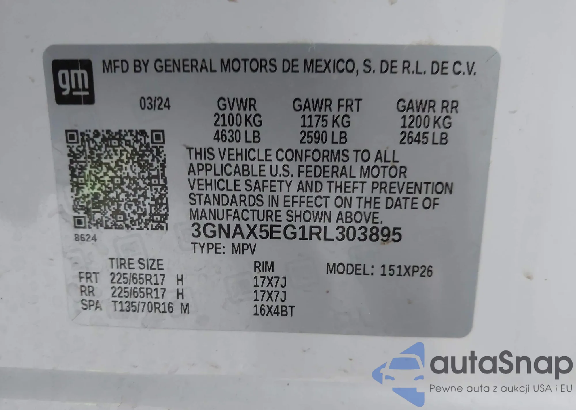 • VIN 3GNAX5EG1RL303895