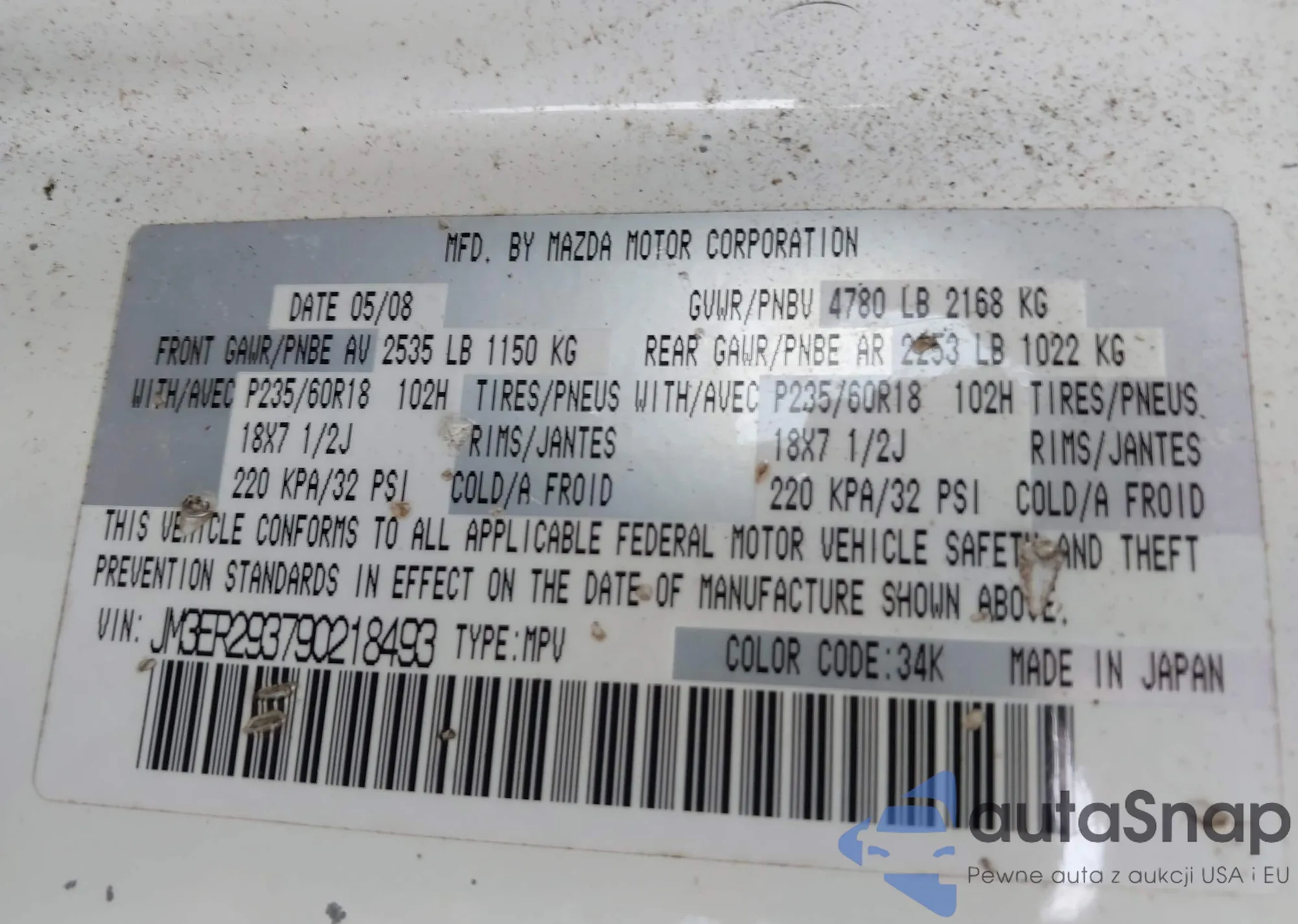 LOT: 42363749 VIN: JM3ER293790218493