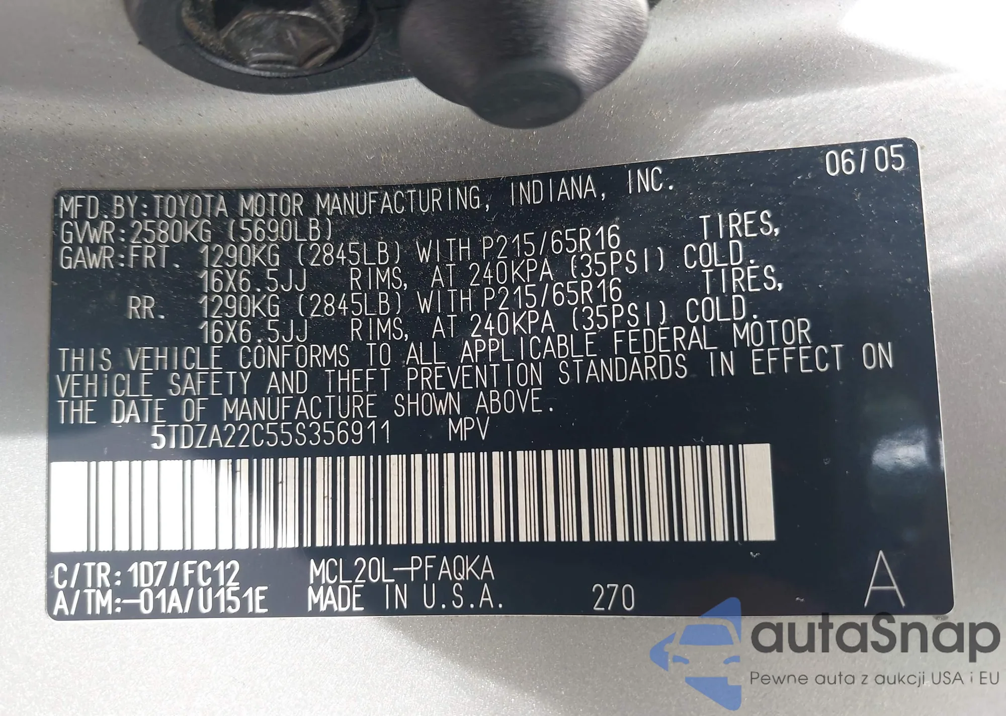 • VIN 5TDKK3DC7CS268098