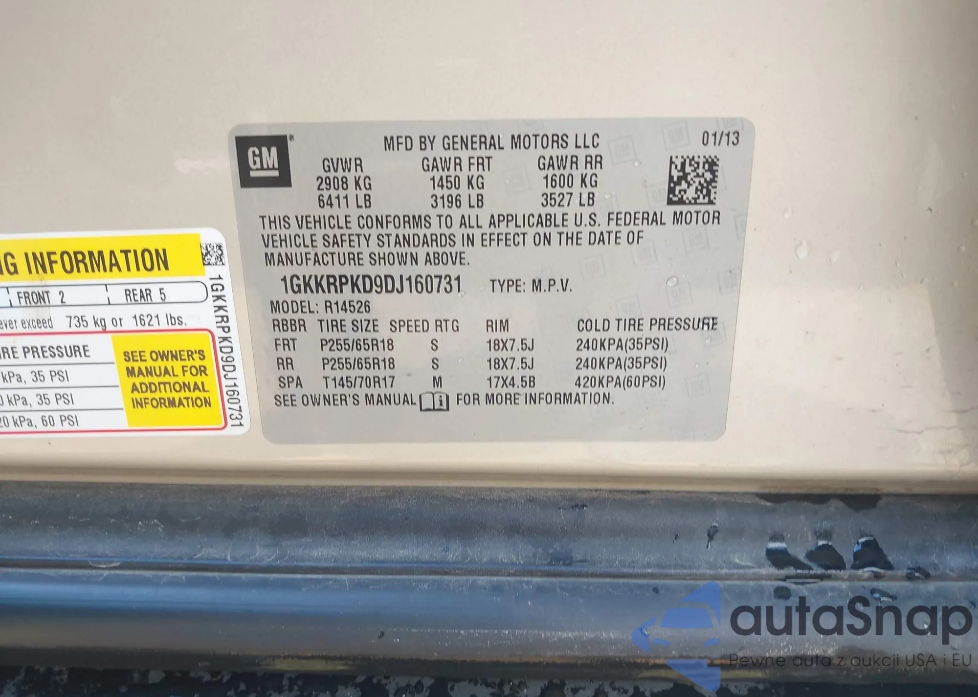 LOT: 42251961 VIN: 1GKKRPKD9DJ160731