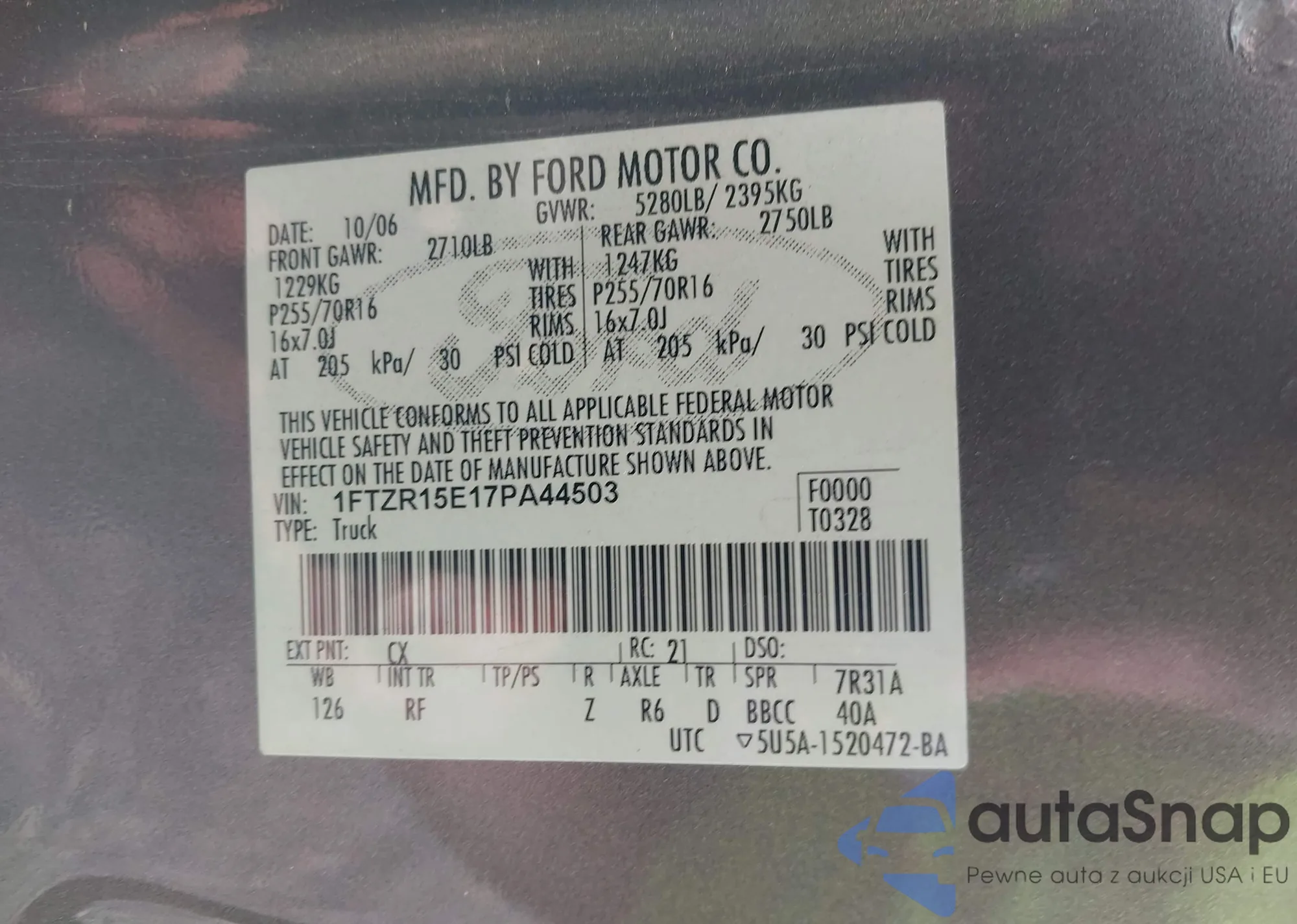 LOT: 42265486 VIN: 1FTZR15E17PA44503