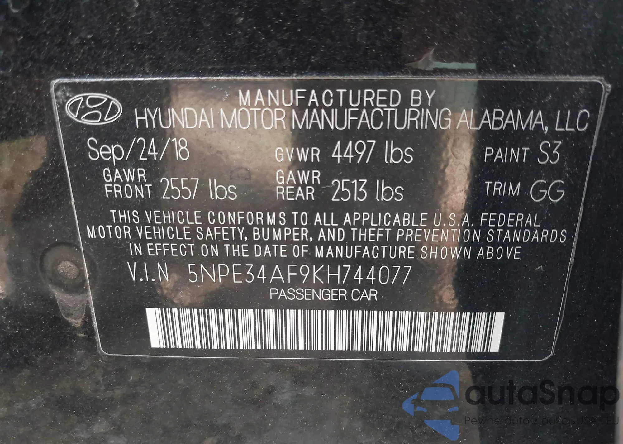 • VIN 5NPE34AF9KH744077