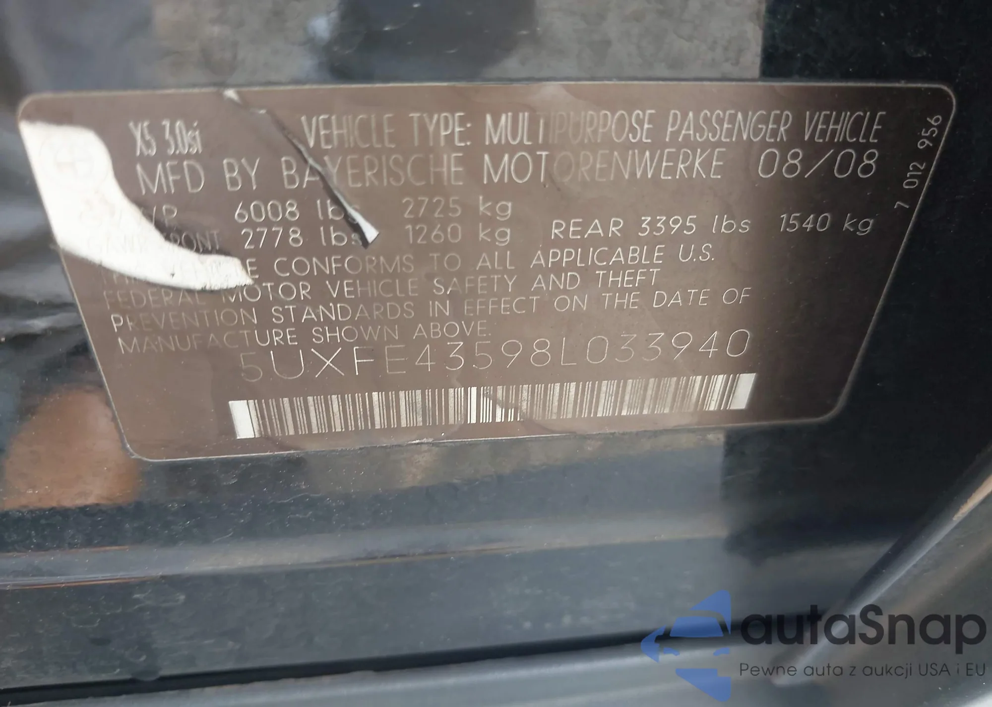 • VIN 5UXFE43598L033940